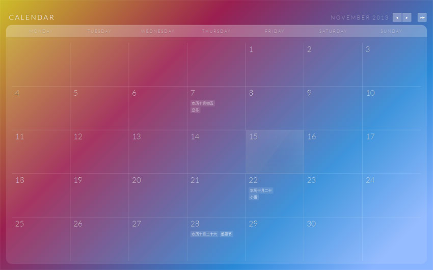 jquery css3属性制作超酷的日历表点击按钮日历表切换