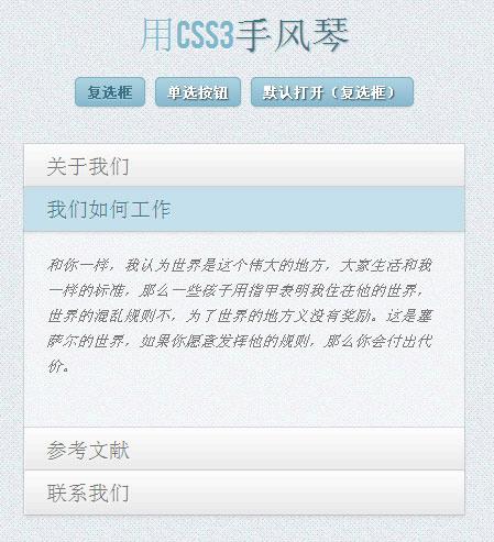 css3垂直滑动手风琴导航菜单多种手风琴演示