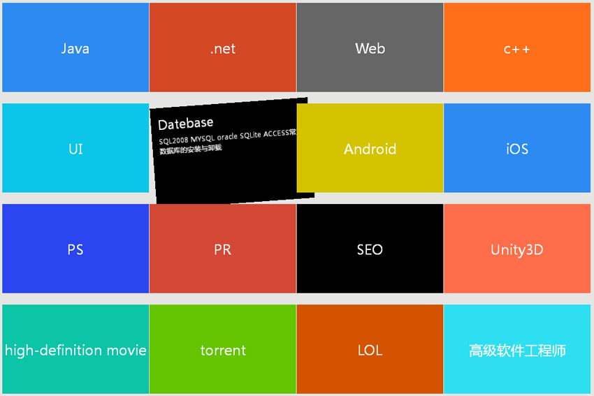 jquery css3 animate属性网格布局div鼠标悬停摇摆动画效果