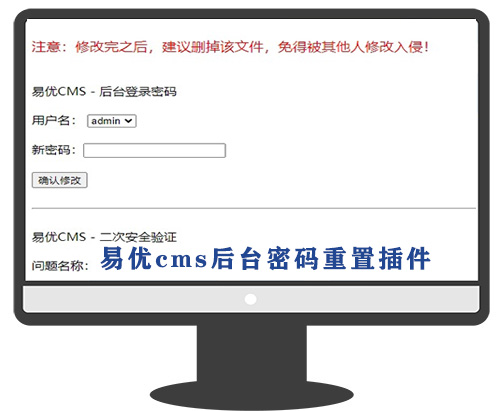 易优重置密码小工具(后台登录+答案密码等)eyoucms密码重置插件