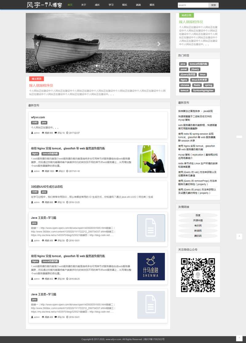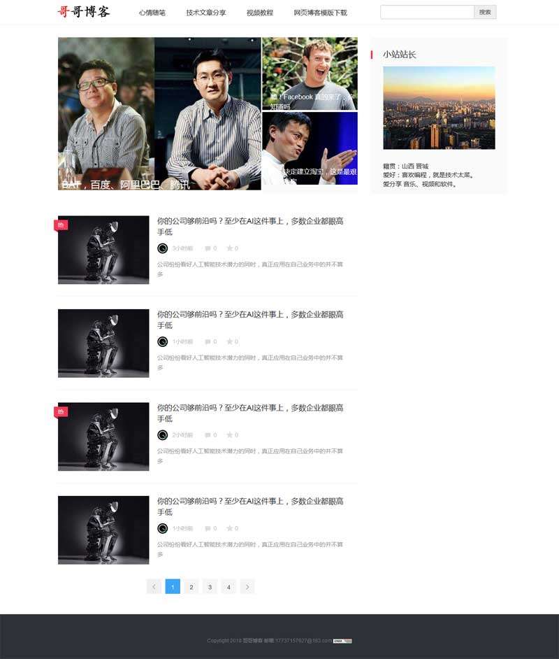 简洁的技术人员个人博客网站模板