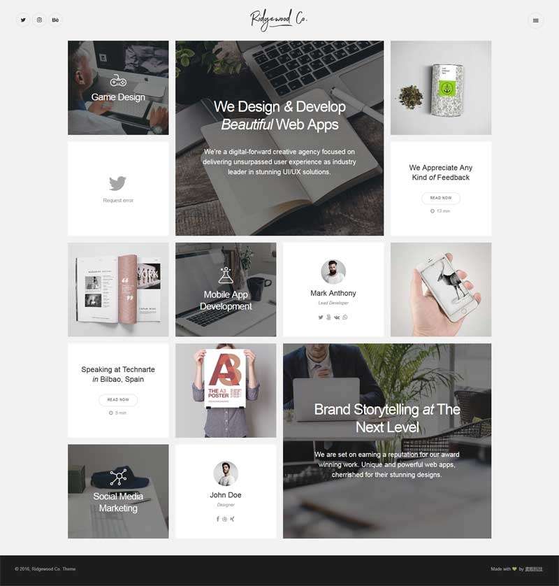 创意的网格布局个人网站模板