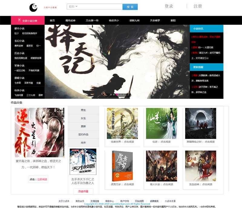 简单的小说阅读网站html模板