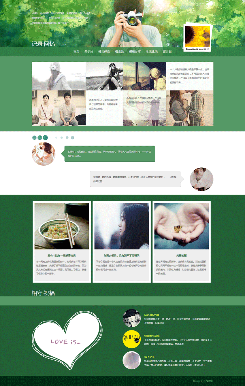 绿色小清新的情侣博客模板html下载