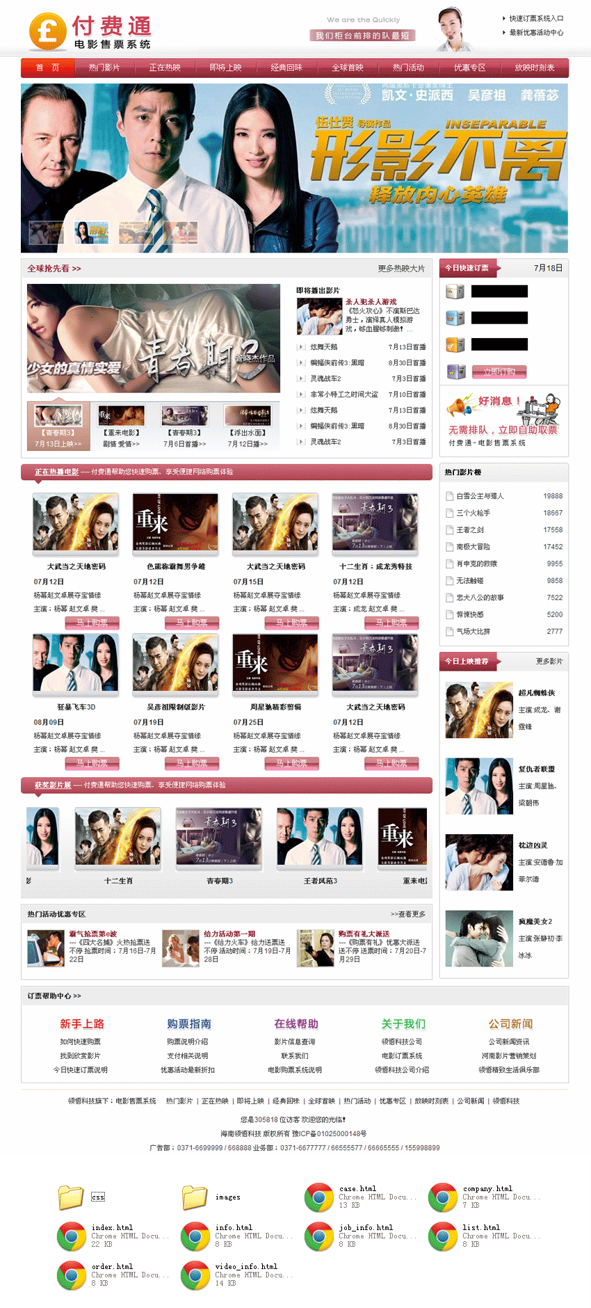 红色的电影售票平台网站模板html源码
