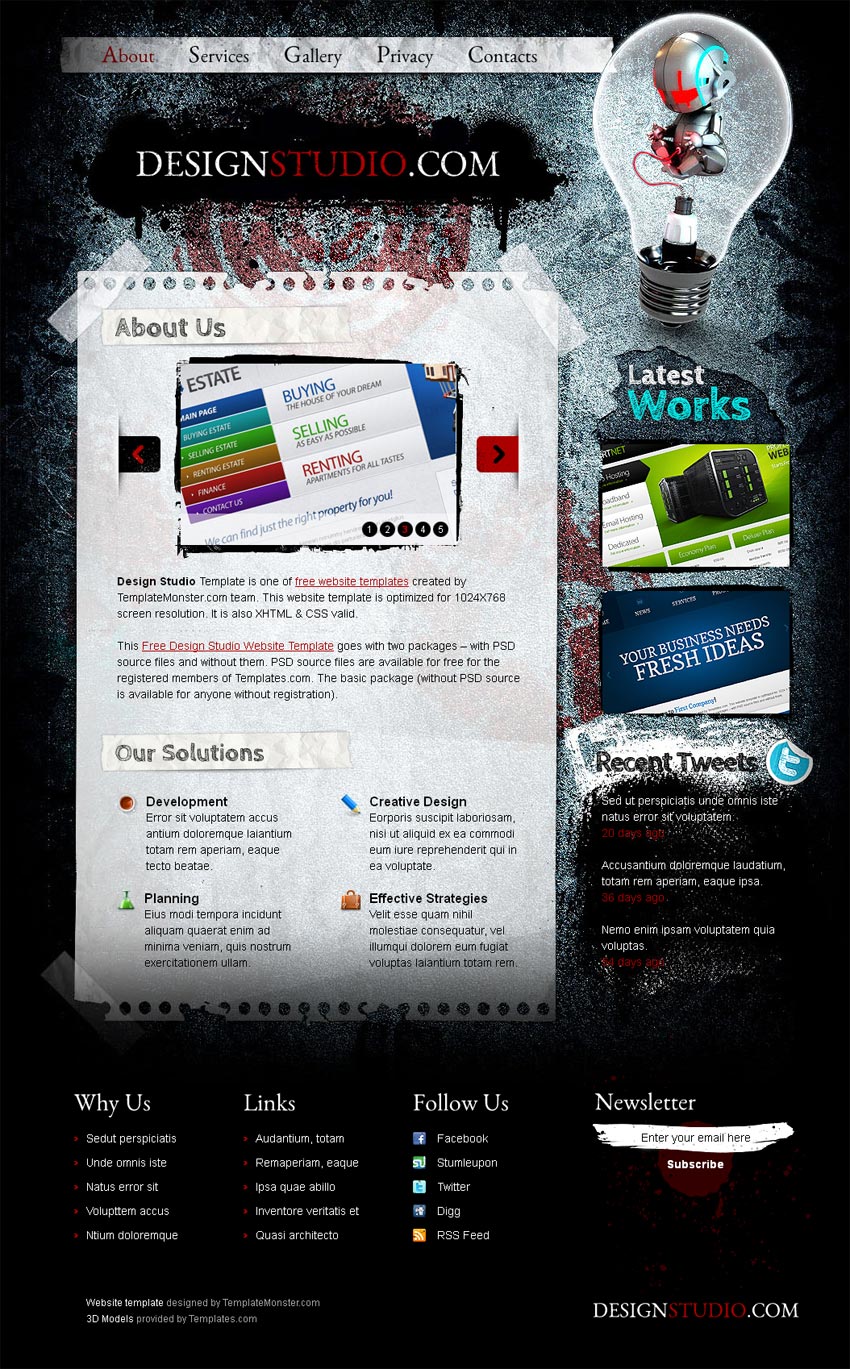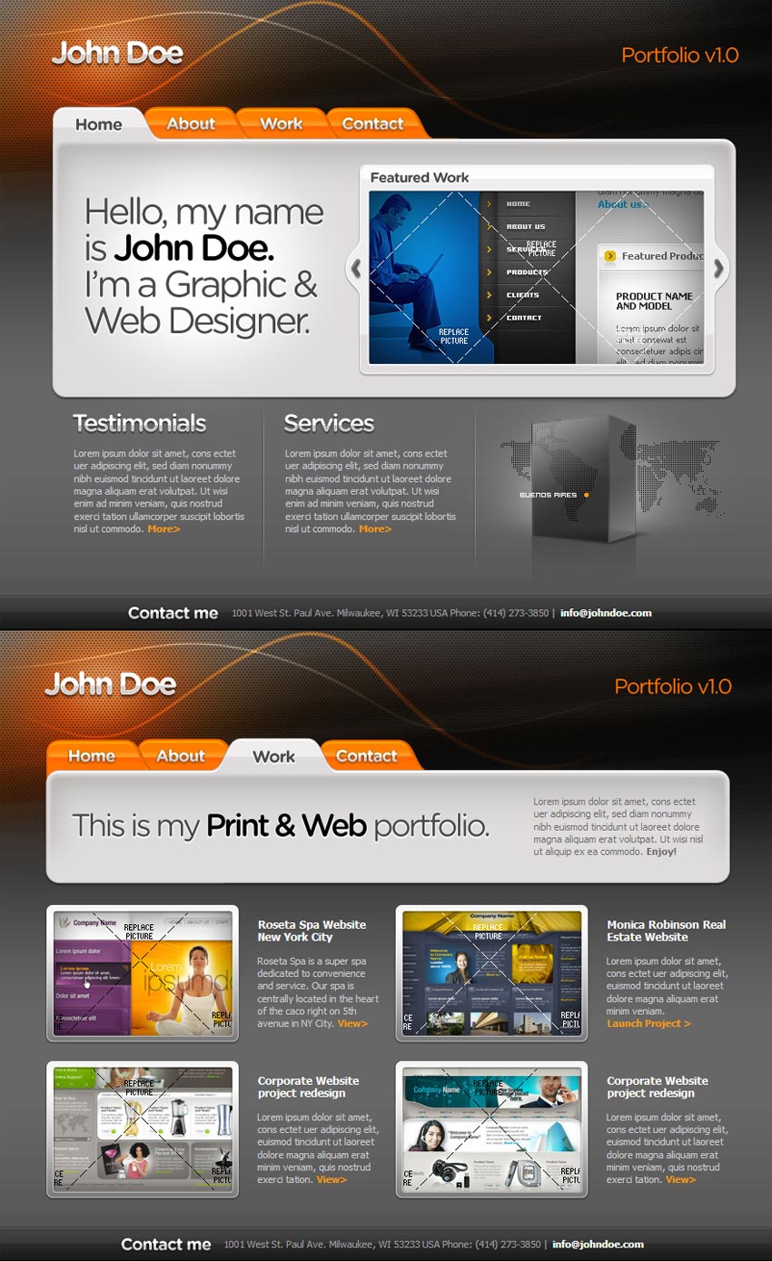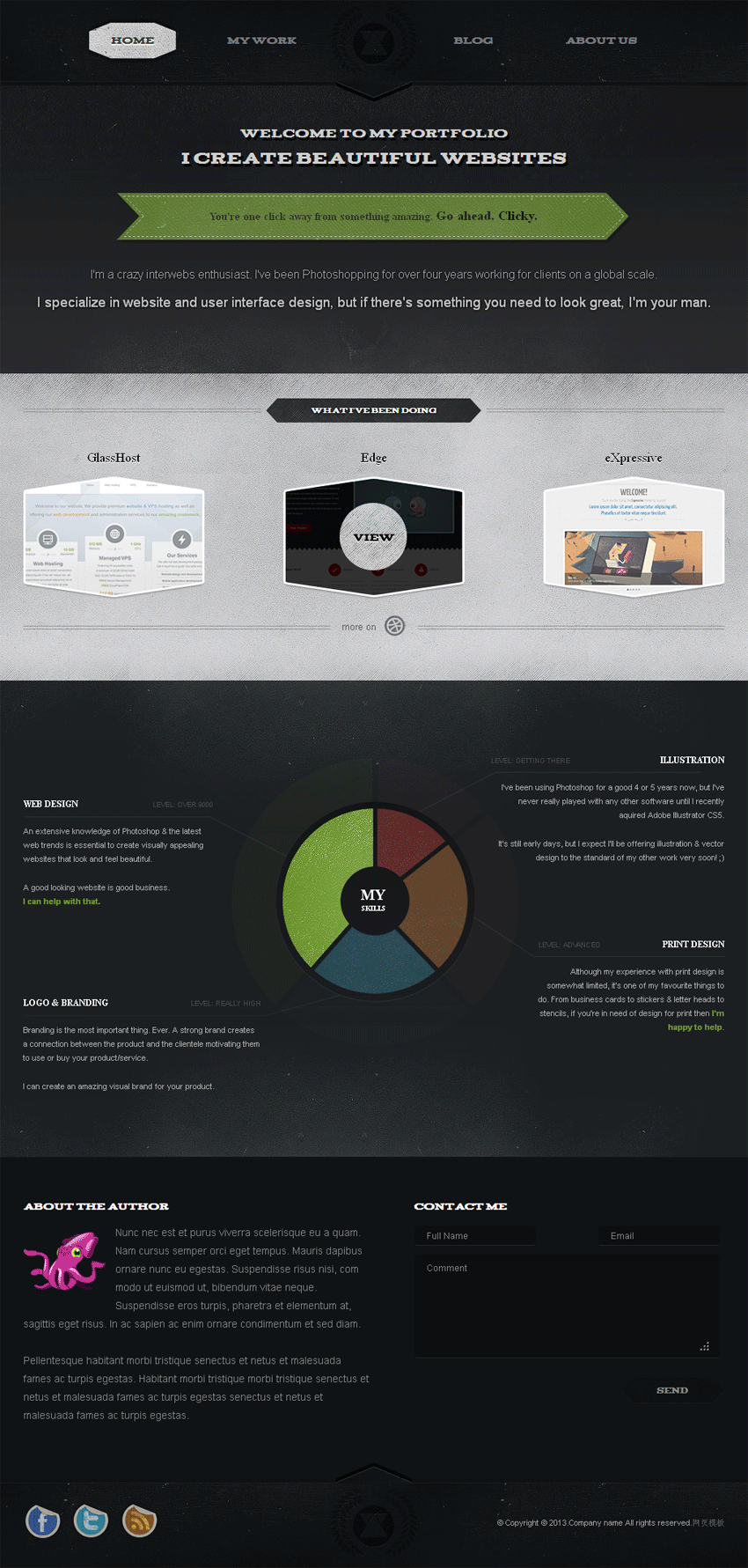 黑色网页web2.0设计师个人主页PSD html全站模板下载