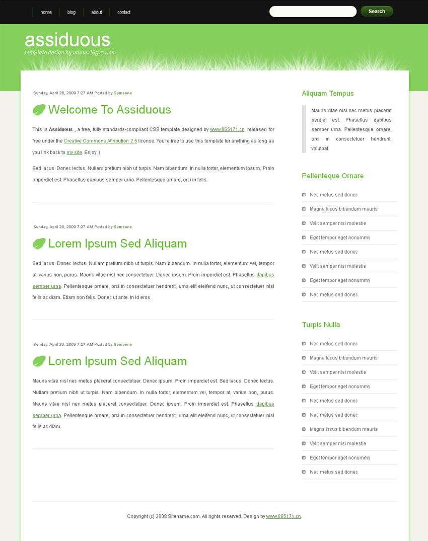 DIV+CSS简单绿色的个人主页网站模板html下载