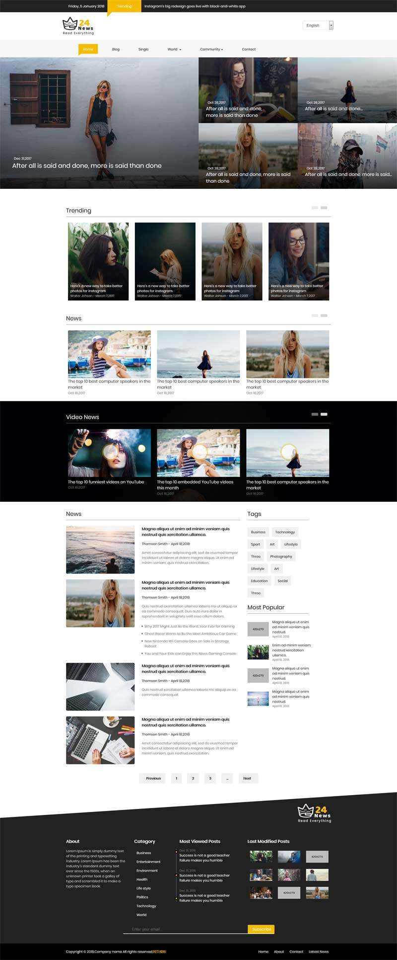 欧美风格简单大气的个人博客网站模板html全站模板下载