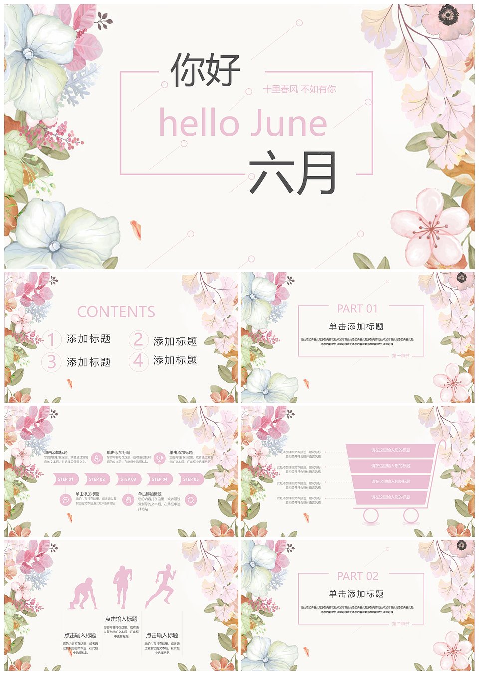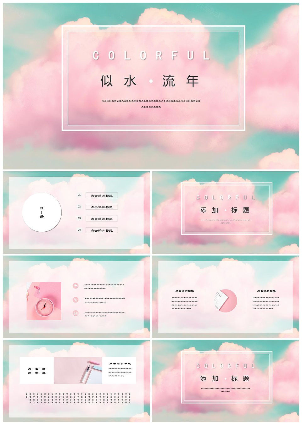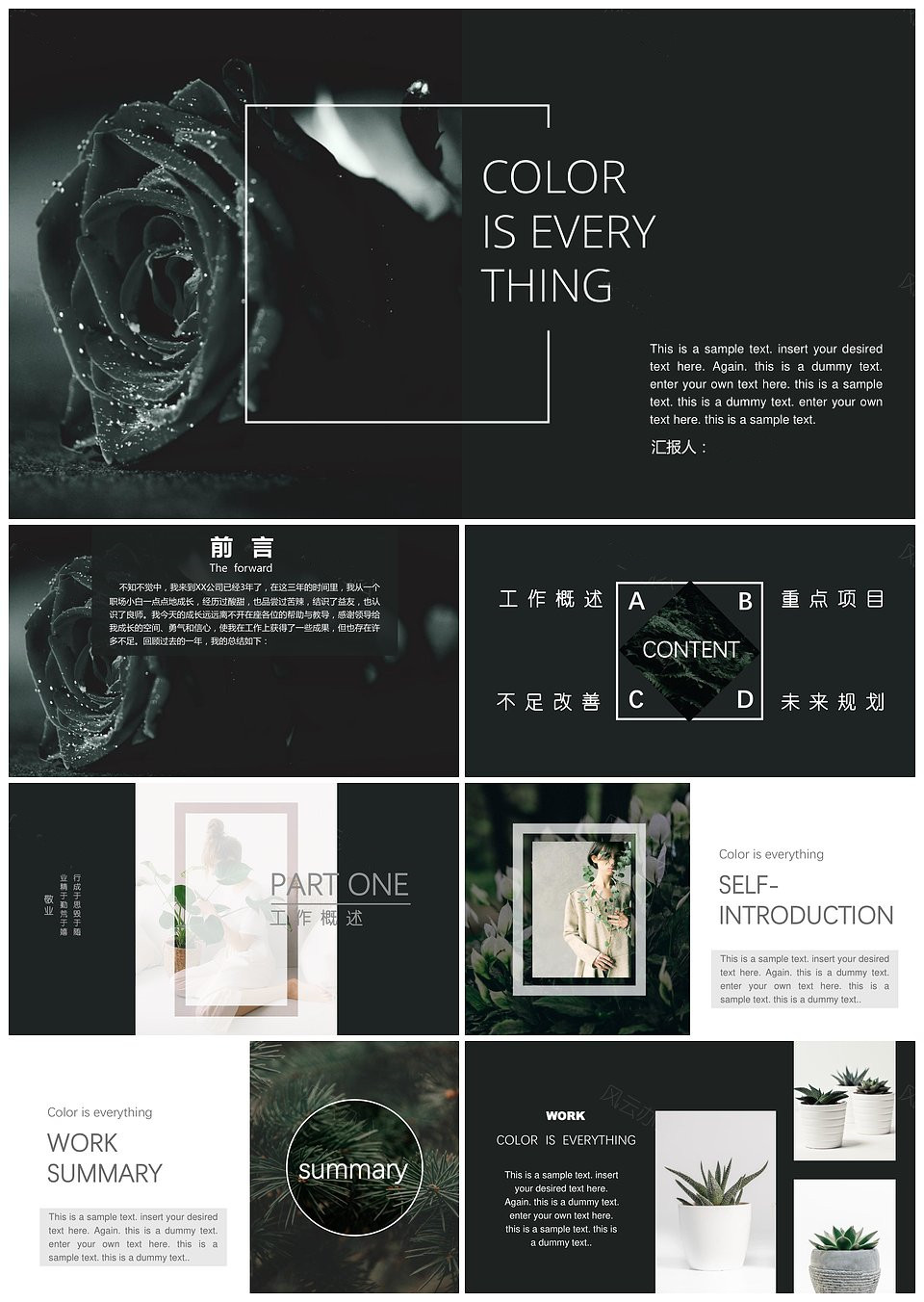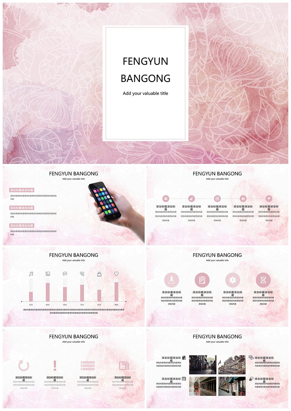 撞色唯美水彩手绘插画年终总结简约PPT模板
