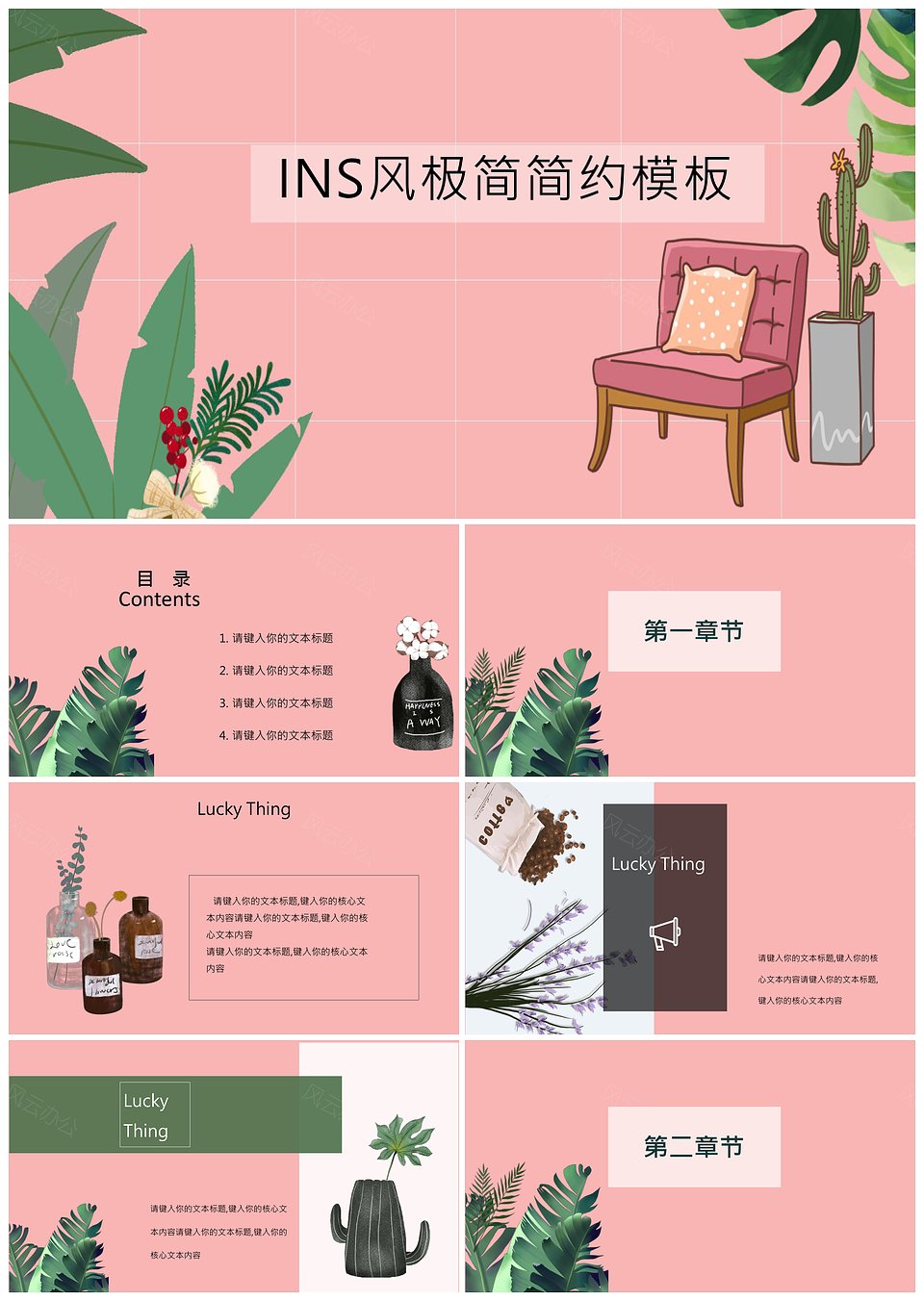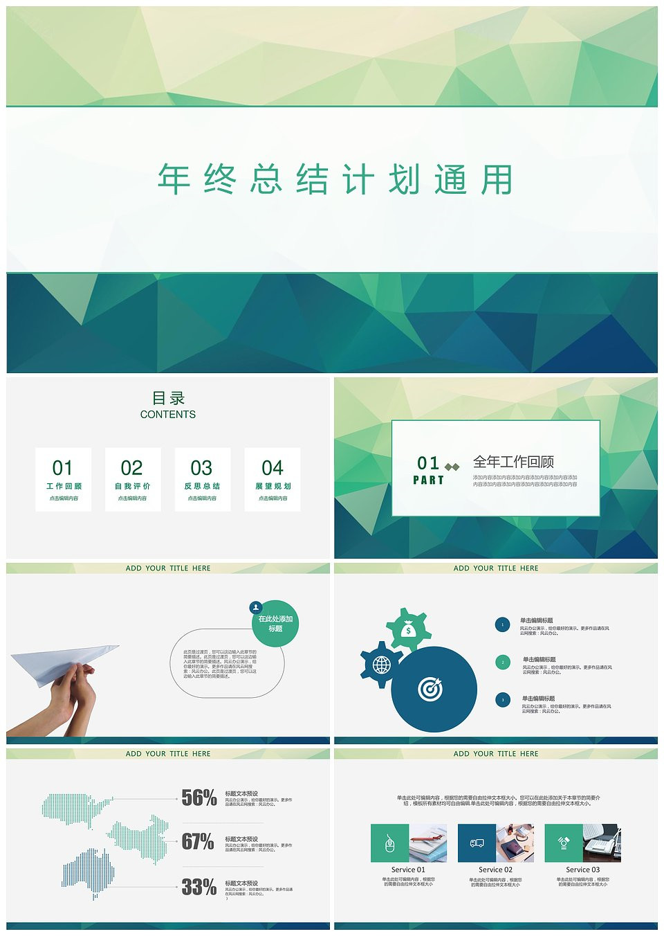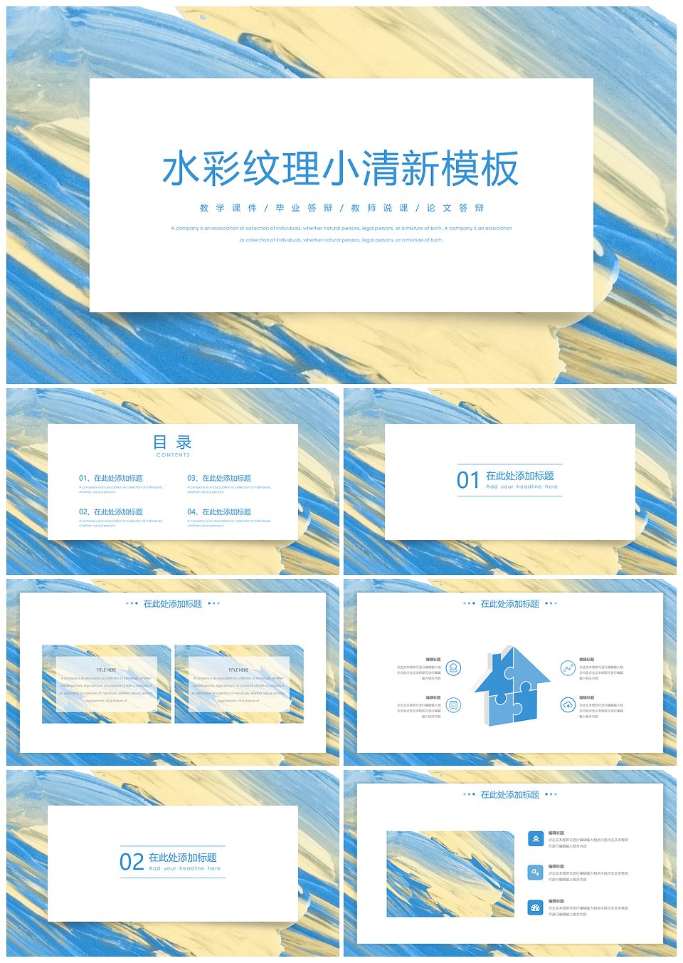 撞色唯美水彩手绘插画年终总结简约PPT模板