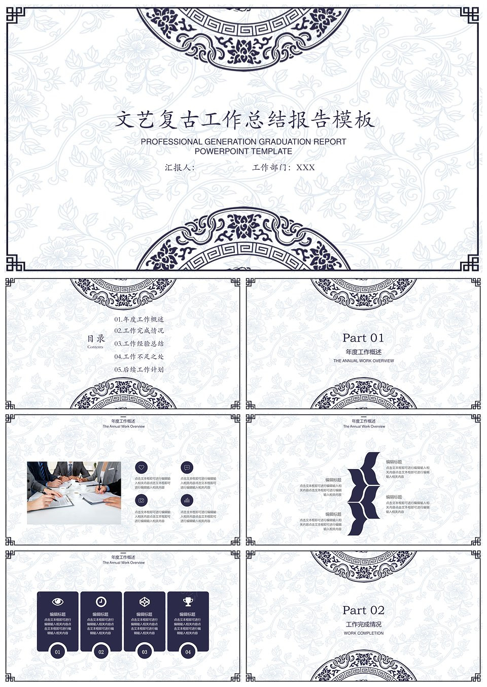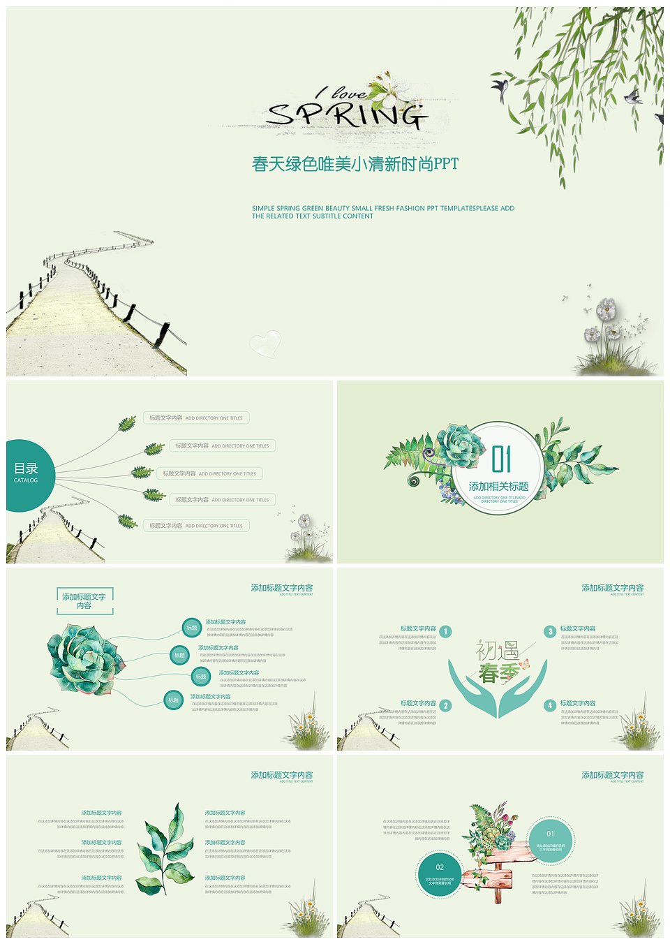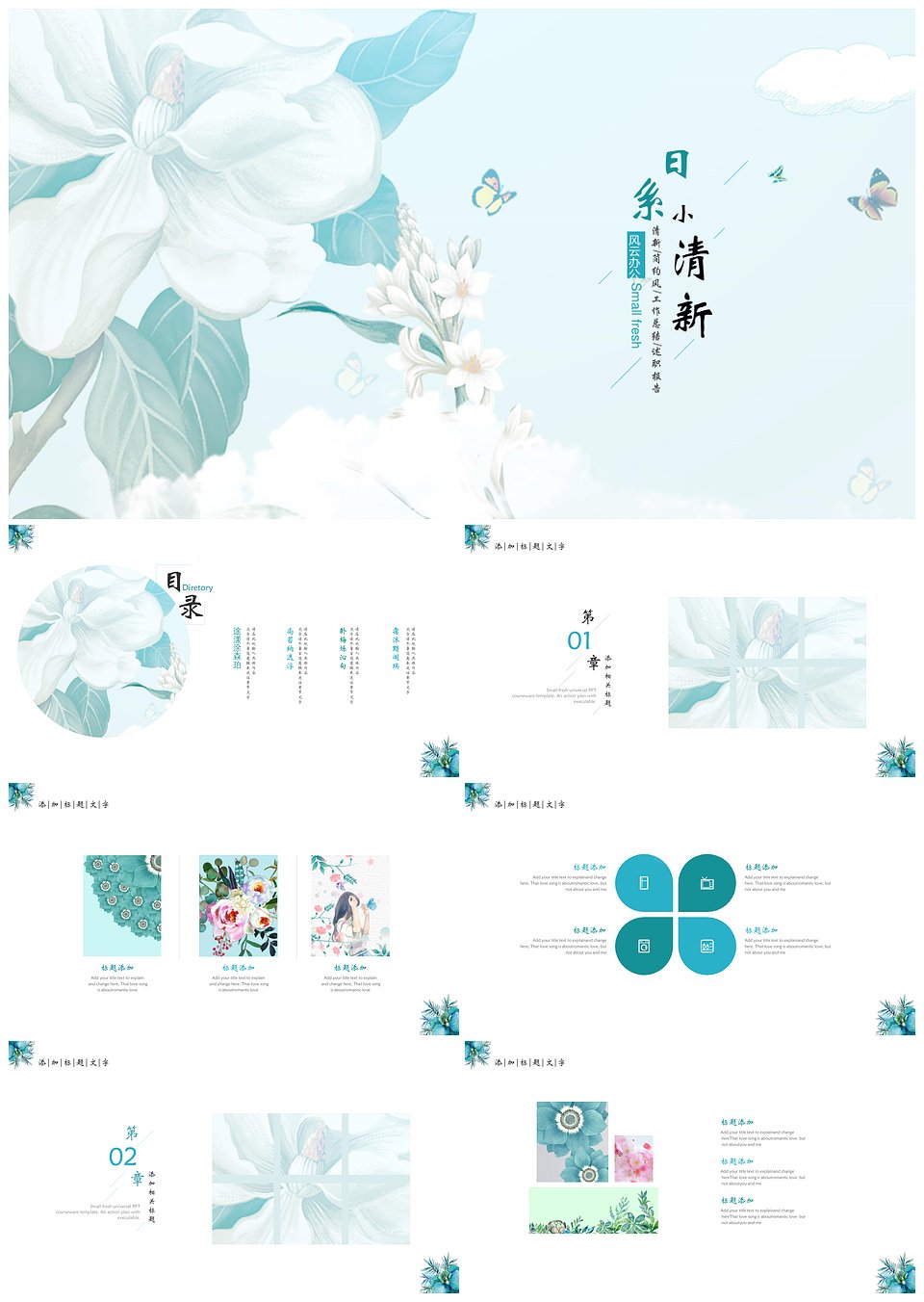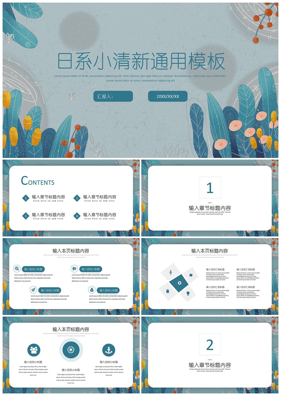 撞色唯美水彩手绘插画年终总结简约PPT模板