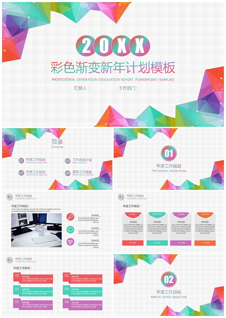 新年计划彩色渐变新年工作计划模板