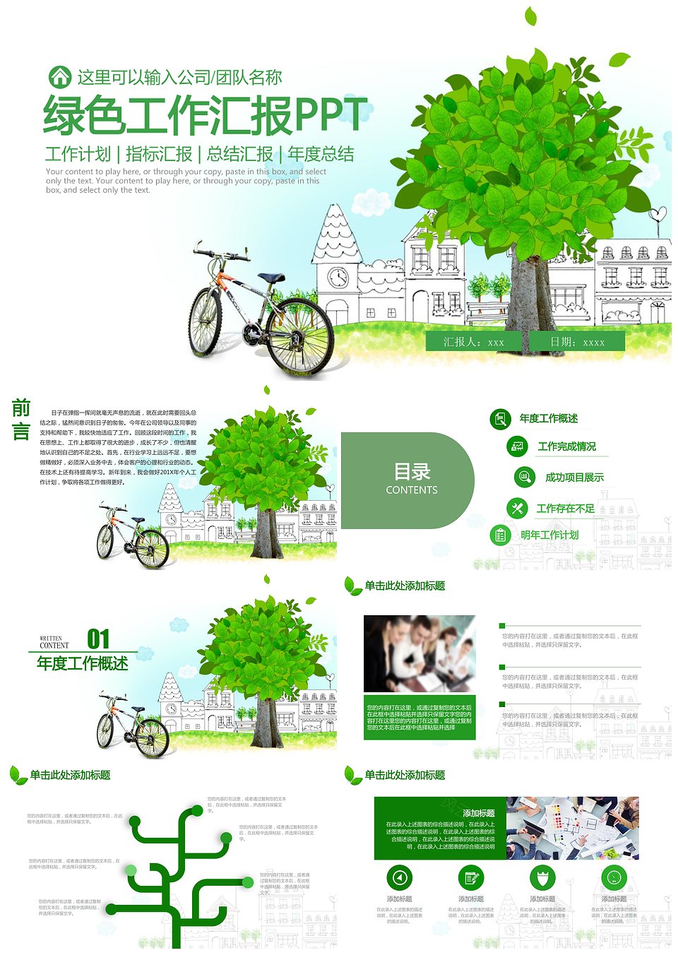 绿色清新商务工作总结汇报通用动态PPT模板