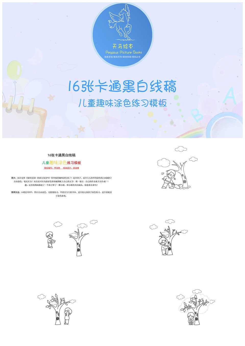 卡通儿童趣味涂色绘本练习PPT模板