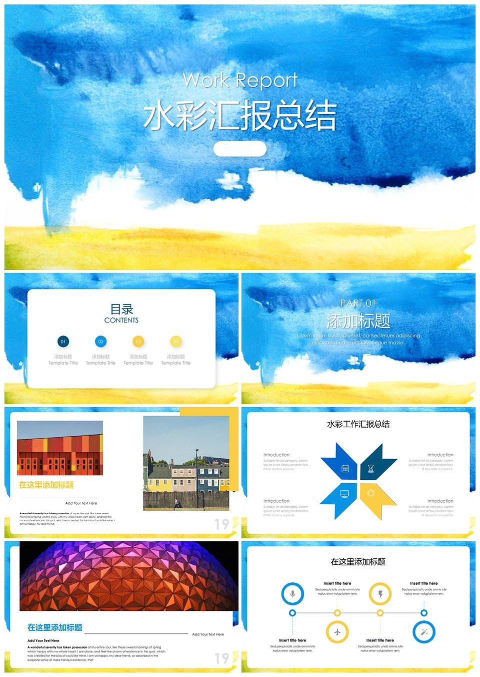 水彩风小清新汇报PPT模板