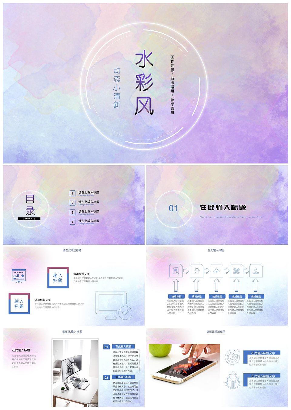 水彩风总结ppt通用模板工作计划书
