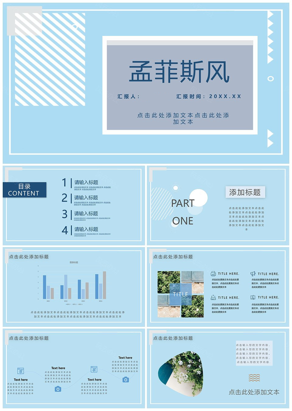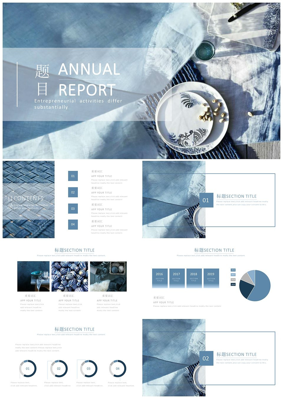 蓝色文艺风通用商务PPT模板