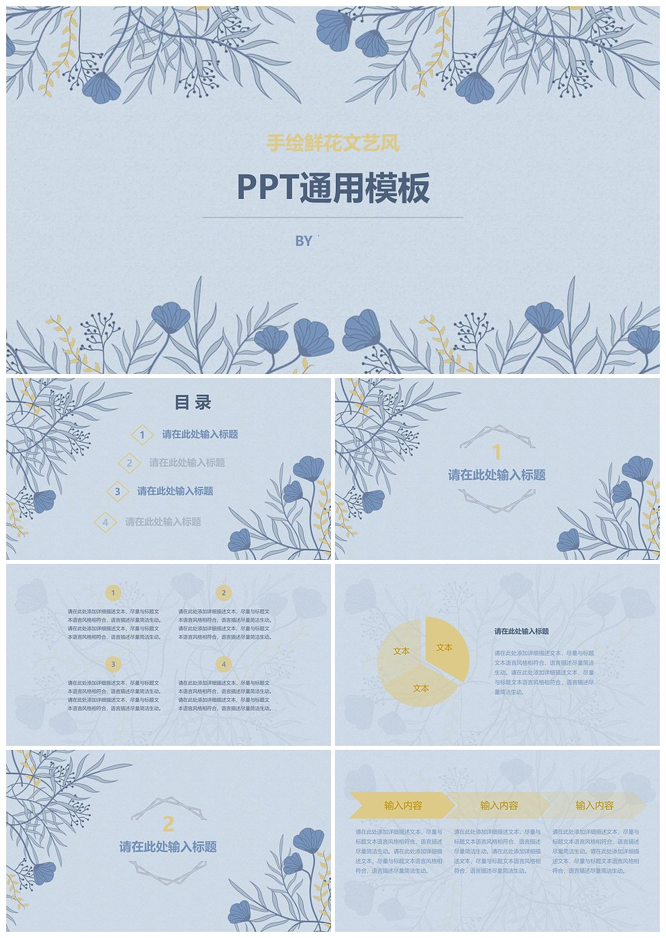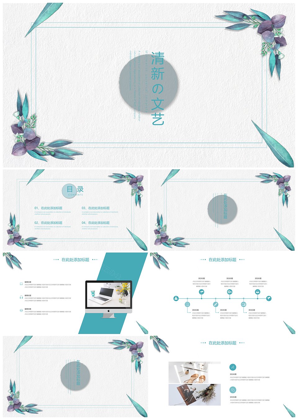 蓝色经典小清新文艺年终总结计划商务通用PPT模板