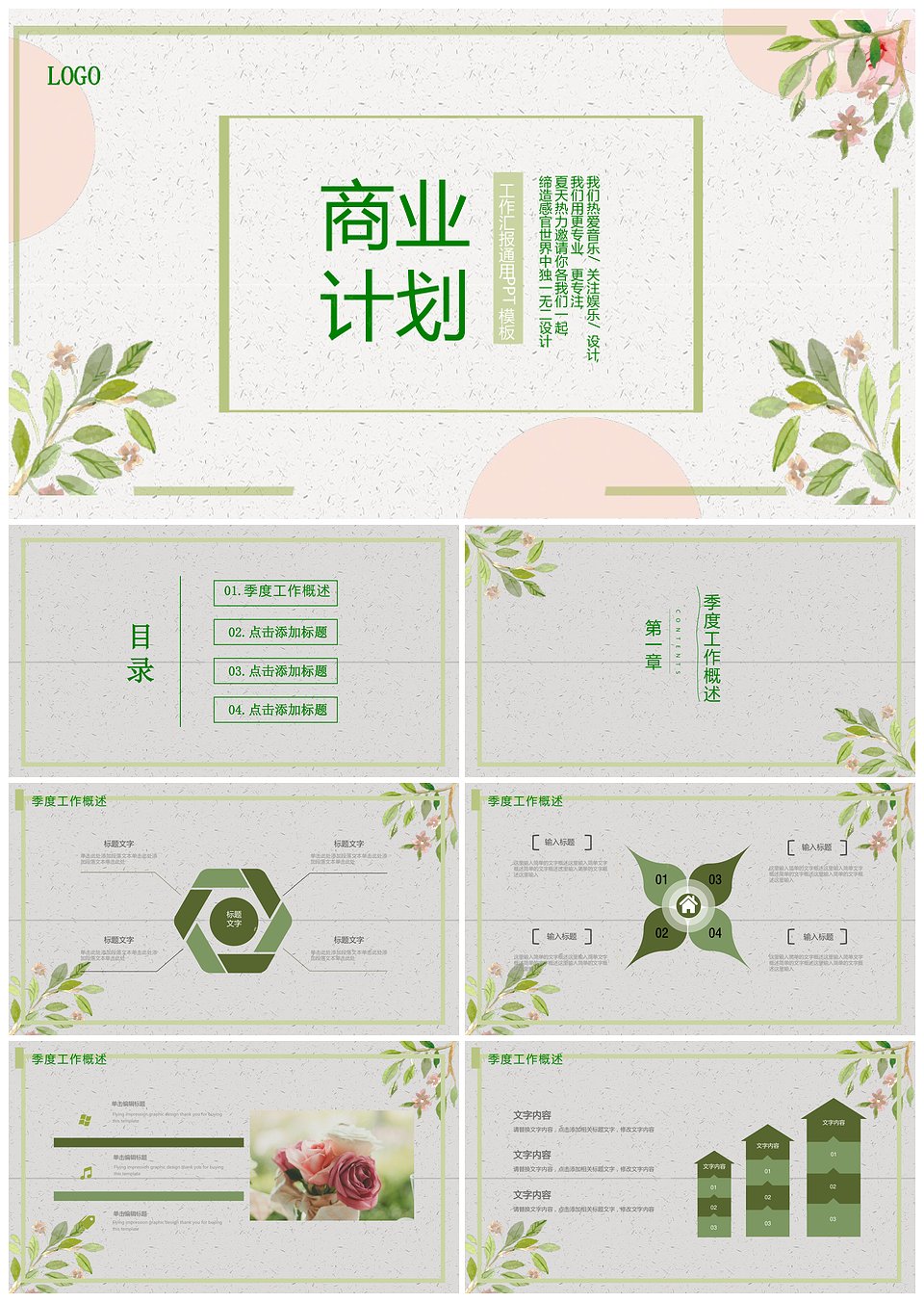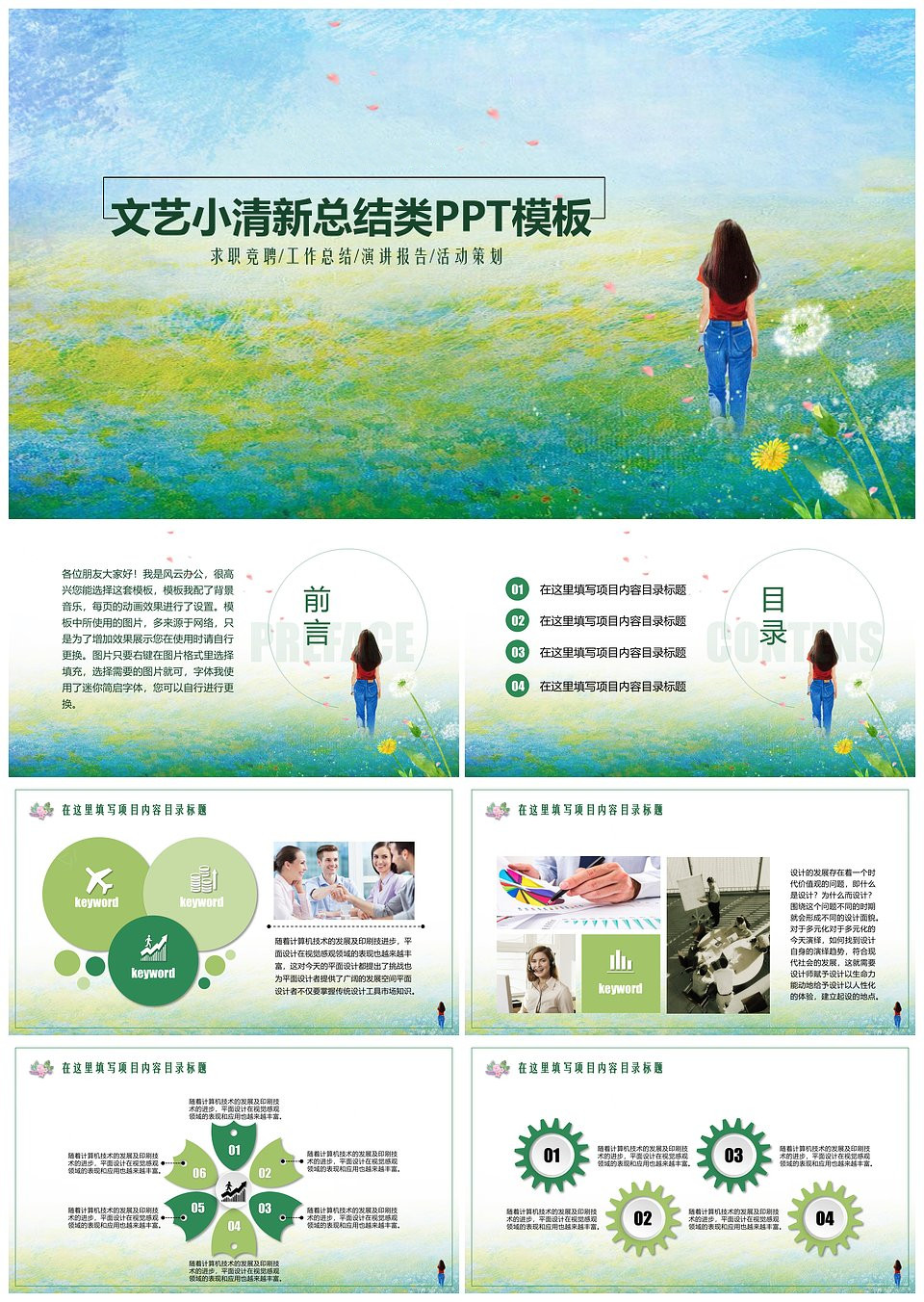 手绘线条小清新简约工作总结计划通用动态PPT模板