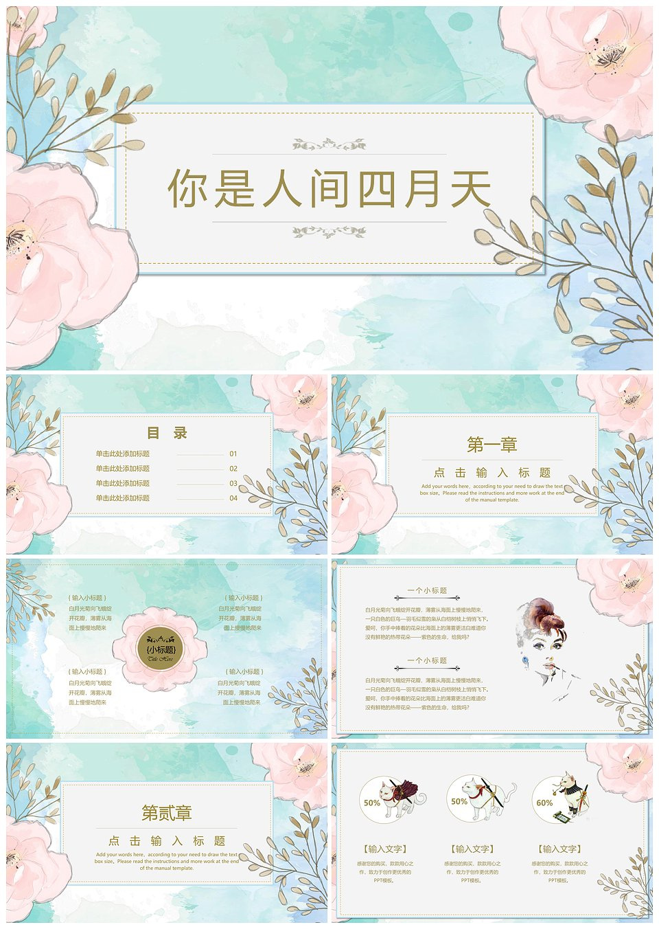 浪漫唯美春季花卉小清新通用PPT