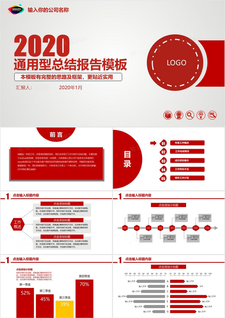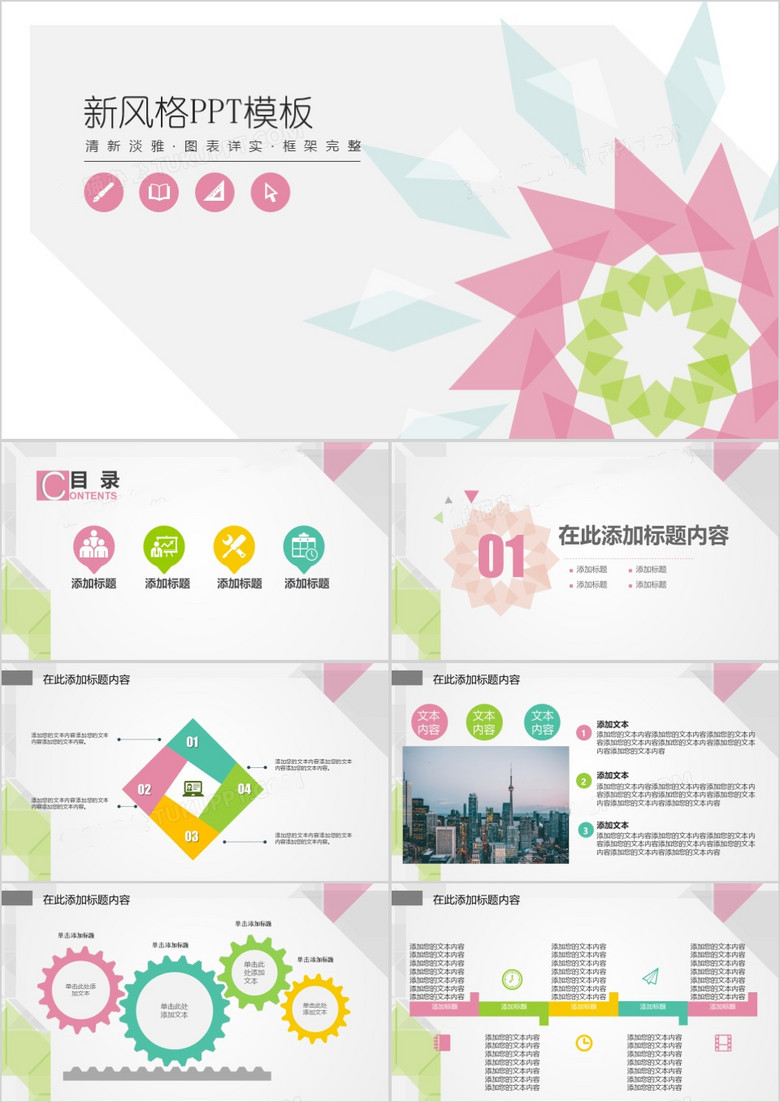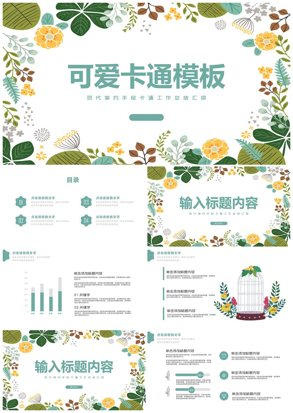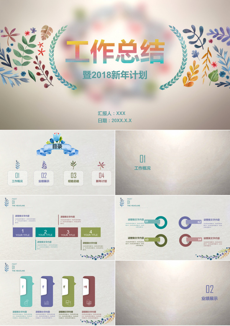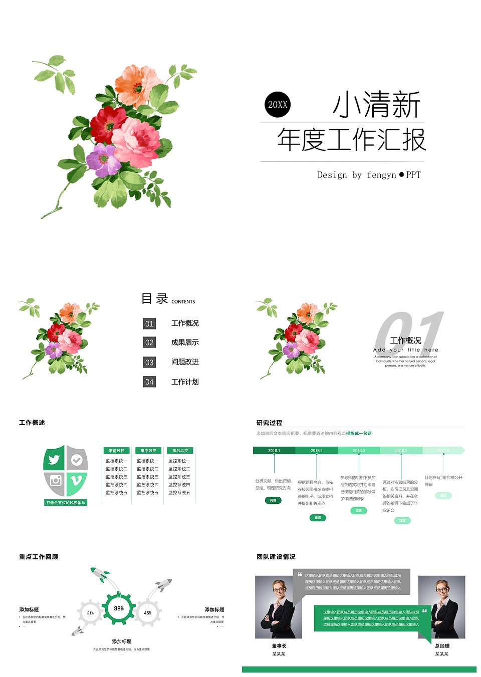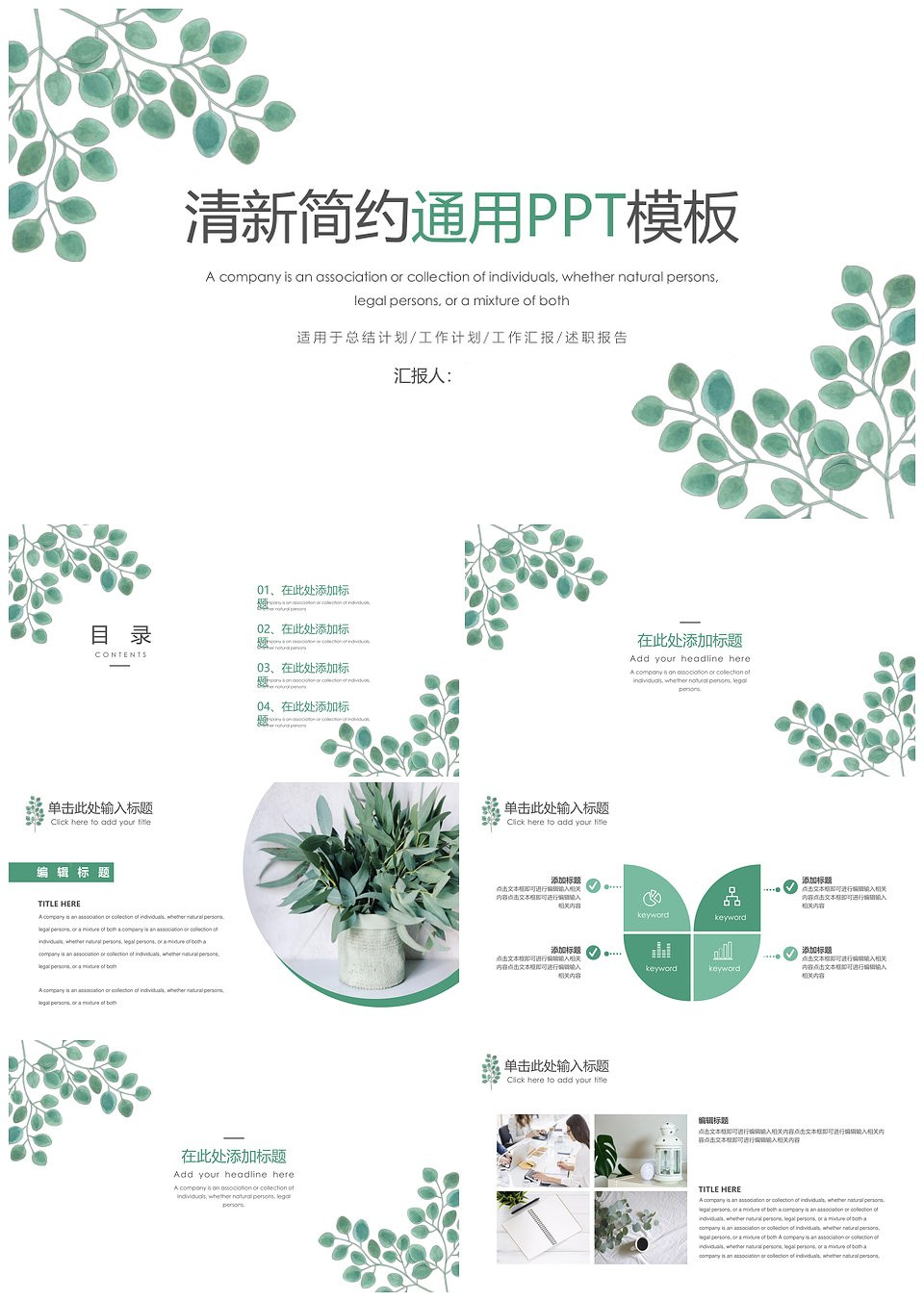 小清新绿色简约风2019新年工作计划年终工作总结PPT模板