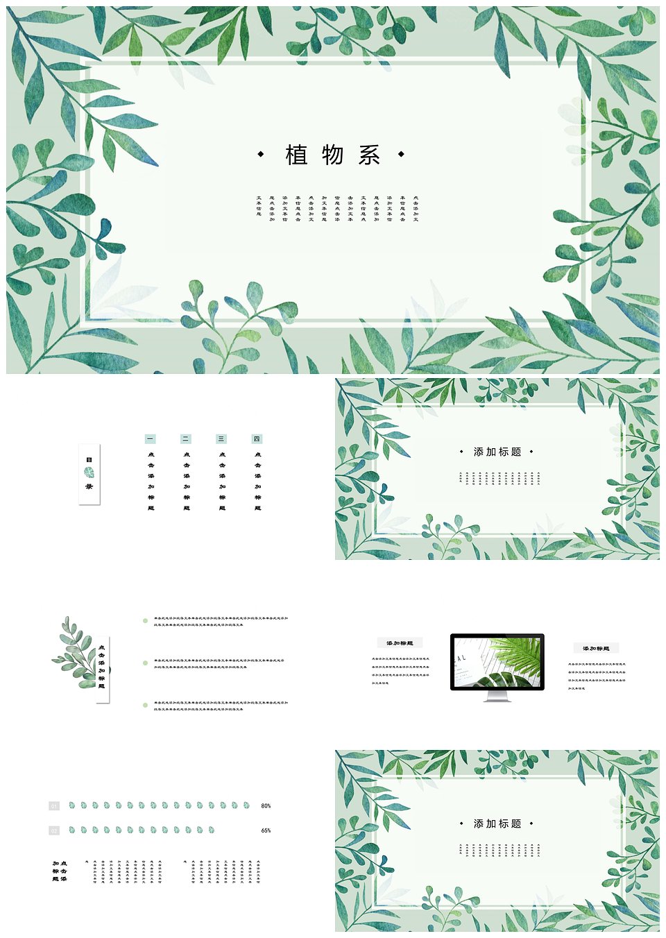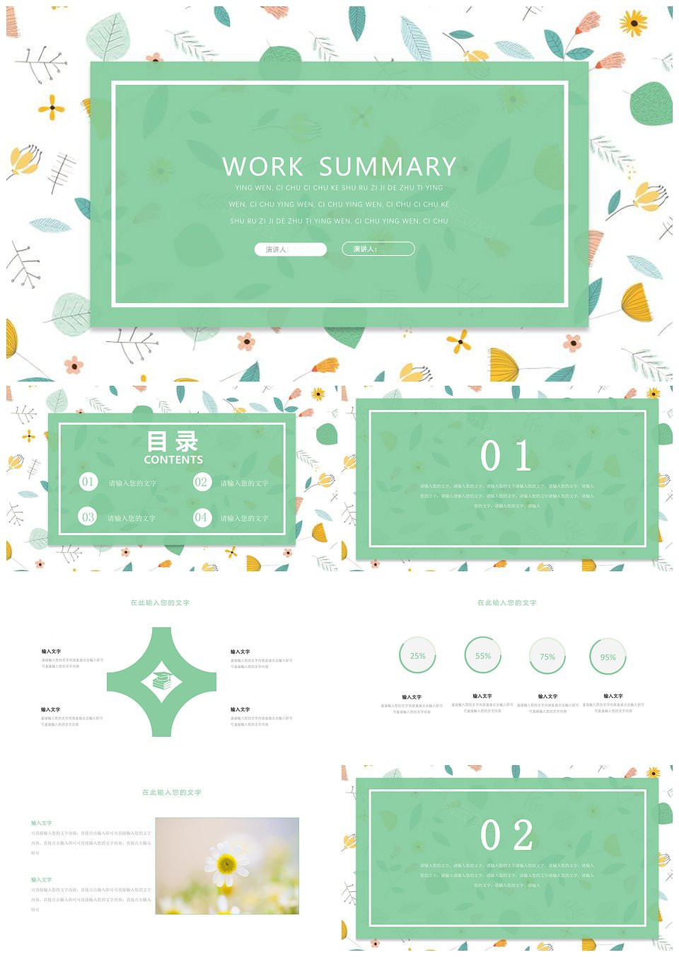 绿色商务欧美风工作总结报告商务计划书PPT模板