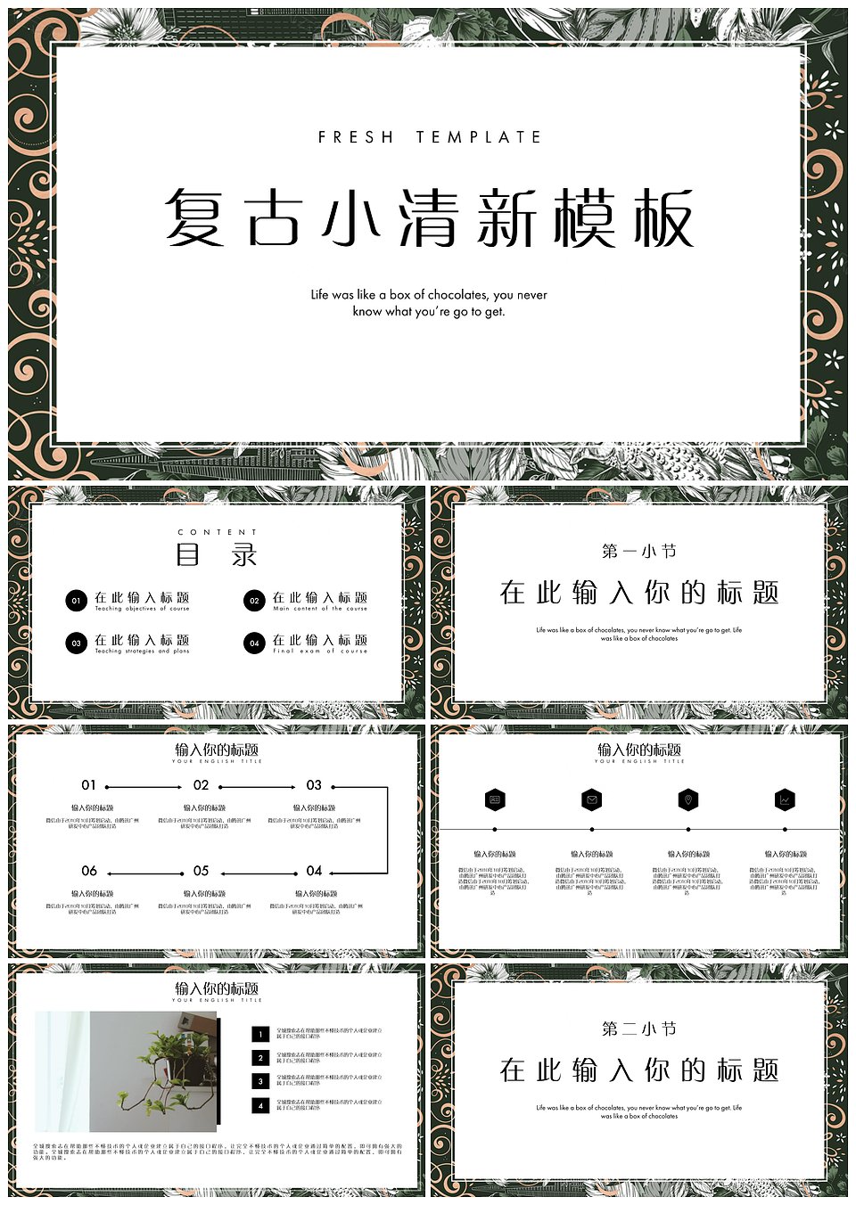 复古小清新简约通用PPT模板