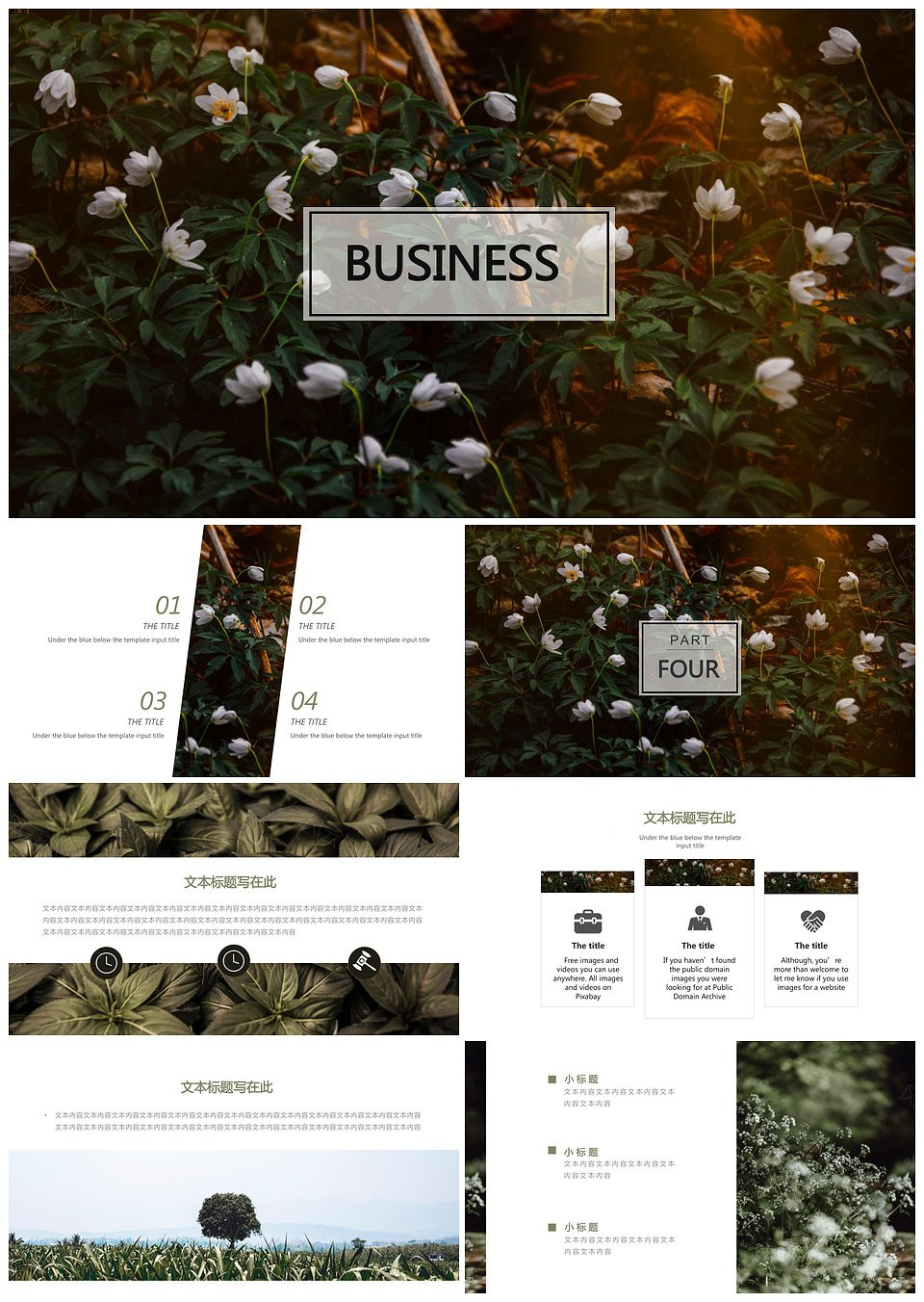 静态绿色系欧美风清新通用PPT模板