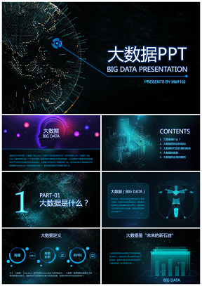 深蓝星空科技风大数据ppt模板商务科技云计算分析下载