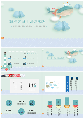 海洋小清新蓝色卡通PPT模板下载
