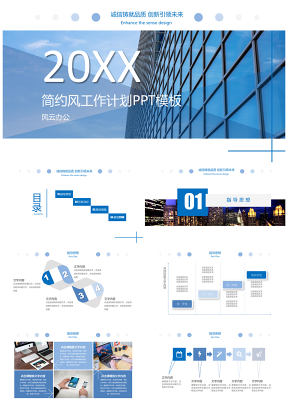 蓝白简约商务工作计划PPT模板下载