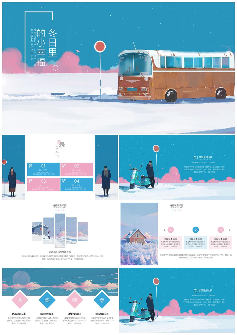 冬日里的小幸福清新插画工作总结工作汇报PPT模板