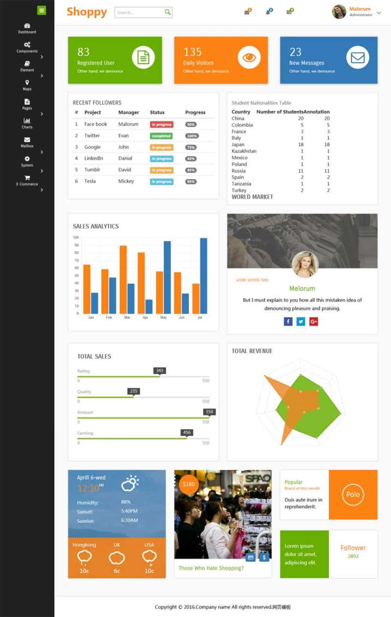 企业商城管理系统html5响应式后台模板