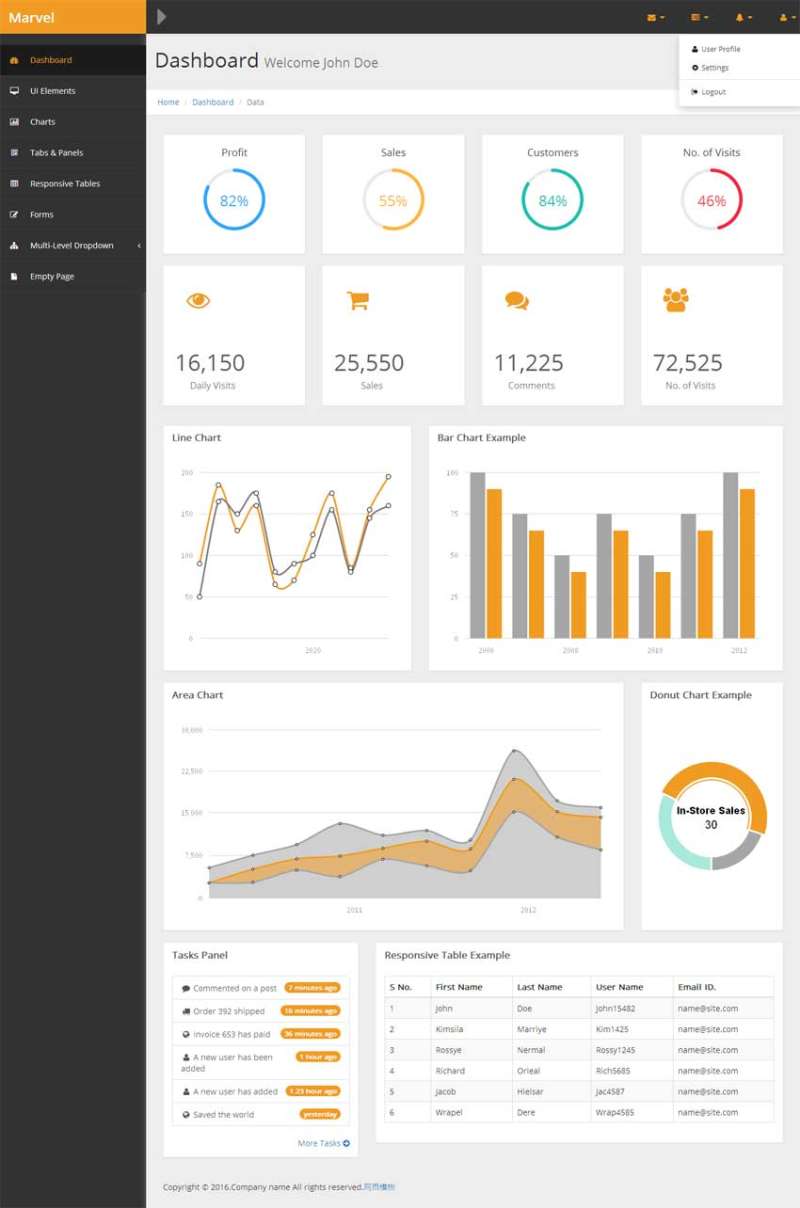 Bootstrap响应式设计后台管理模板下载