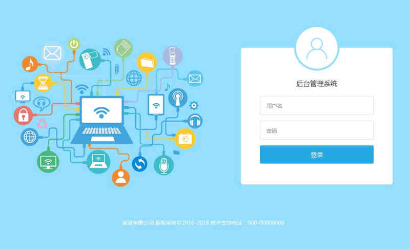 蓝色的网络技术后台登录界面模板