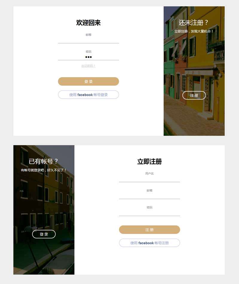 左右切换的登录注册页面ui模板