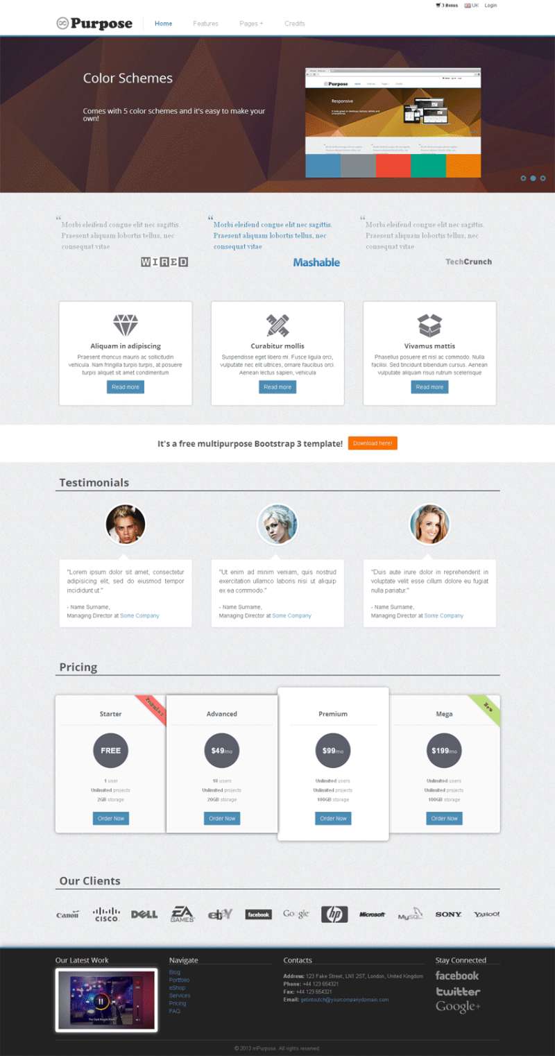 简洁的bootstrap响应式网页设计公司模板源码下载