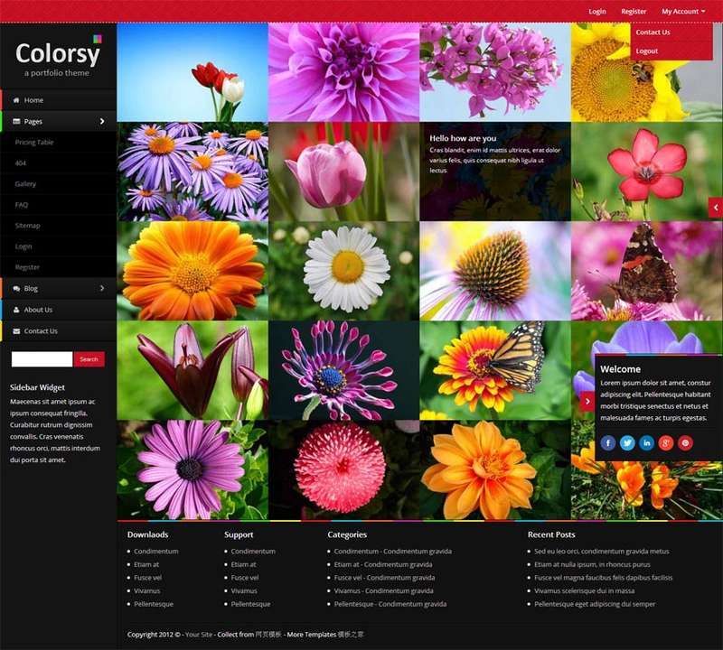 网页扁平化风格的网络图片分享门户网站模板html全站下载