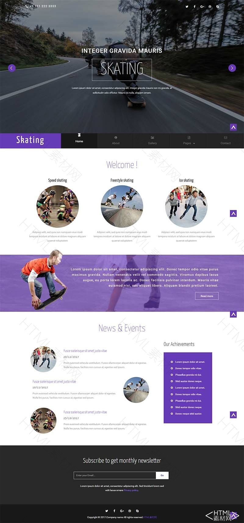 运动滑冰旱冰滑冰运动宽屏响应式模板紫色
