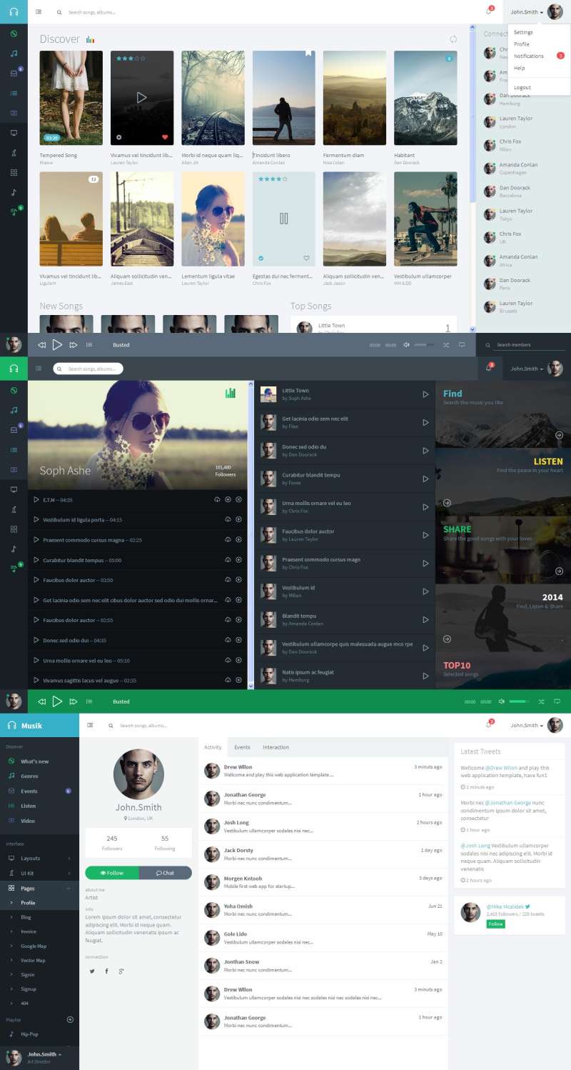 扁平化风格bootstrap响应式社交音乐网站模板html整站下载