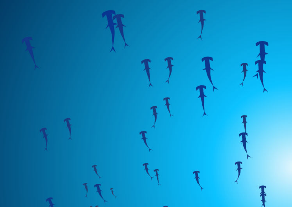 HTML5海底鲨鱼魔鬼鱼群游动画