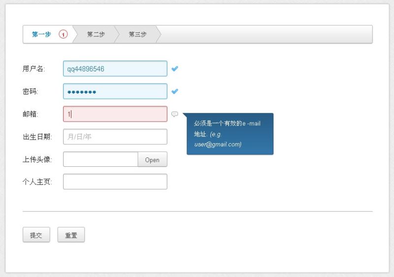 jquery html5注册表单验证提示信息带步骤的注册表单代码