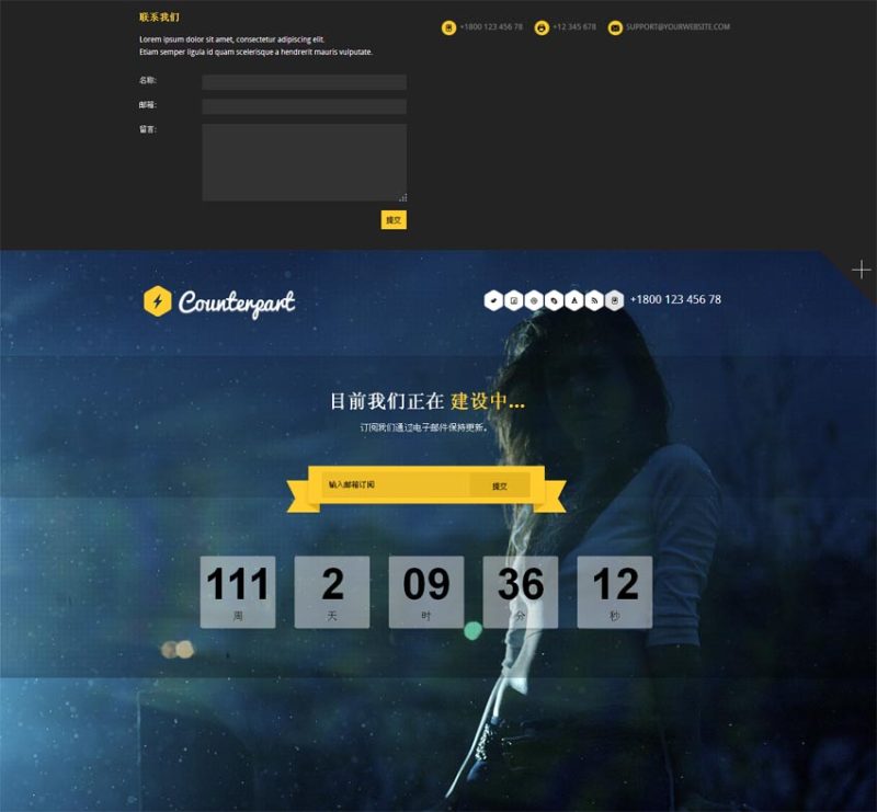 黑色的倒计时网站正在建设中html单页模板源码下载