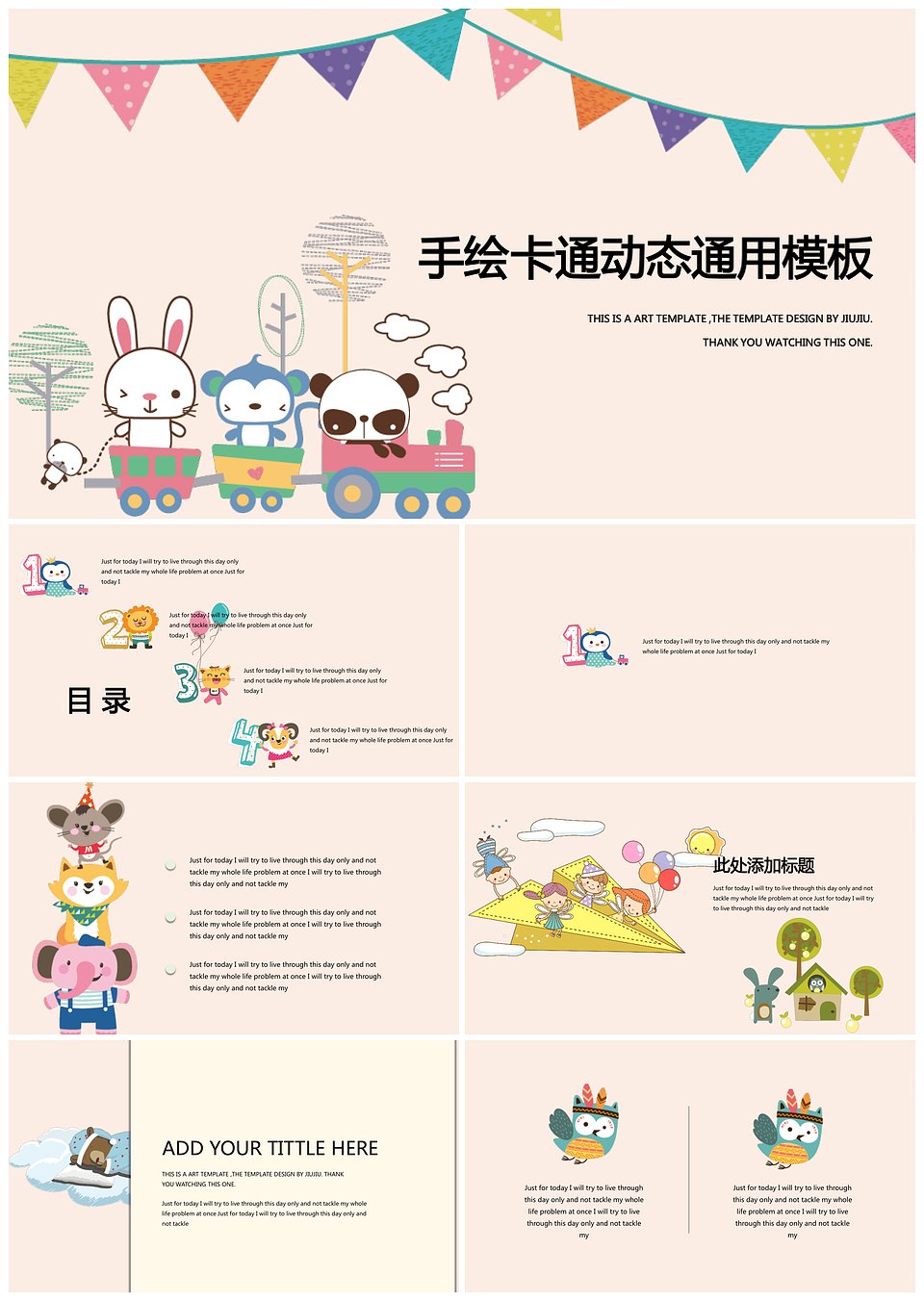 六一卡通可爱幼儿园教育教学PPT教案动态展示模板