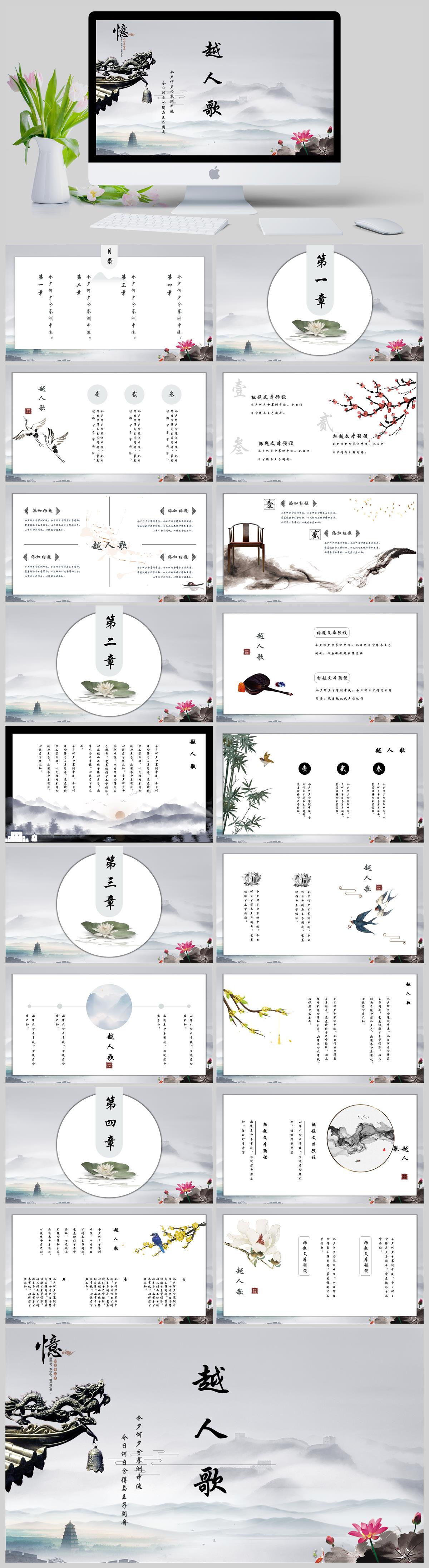 中国风语文课件越人歌教育通用PPT模板