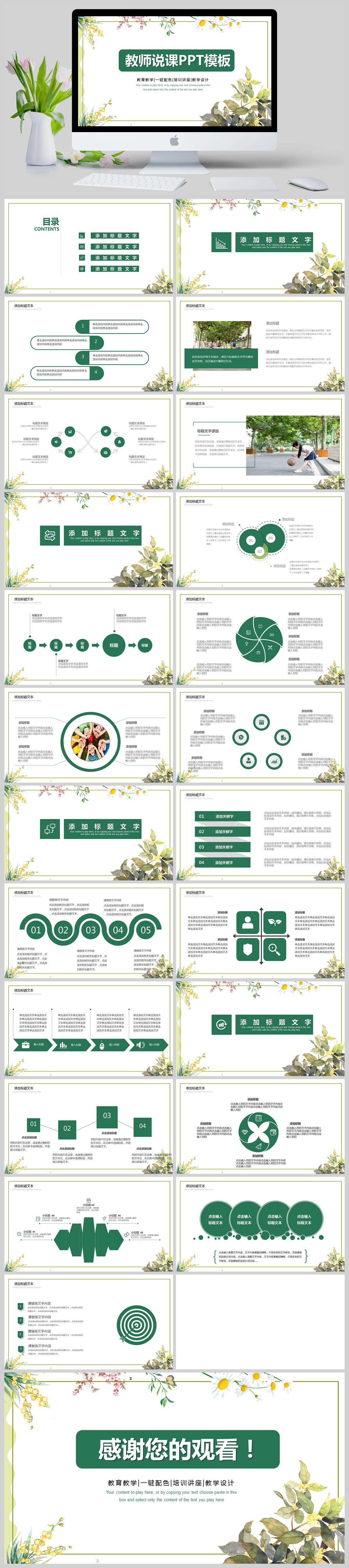 清新简约教师说课PPT模板