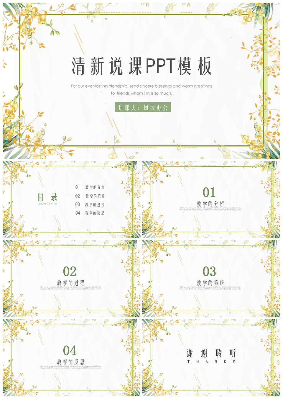 小清新老师上课公开课说课教学课件(PPT主题框架)