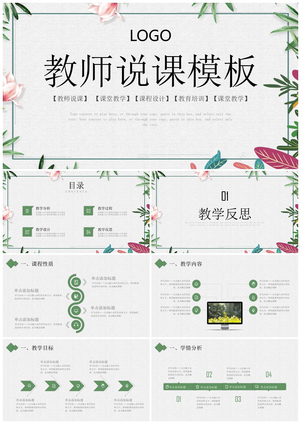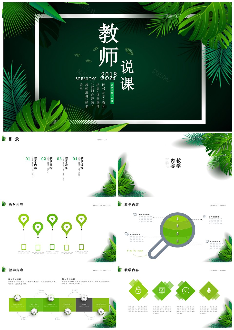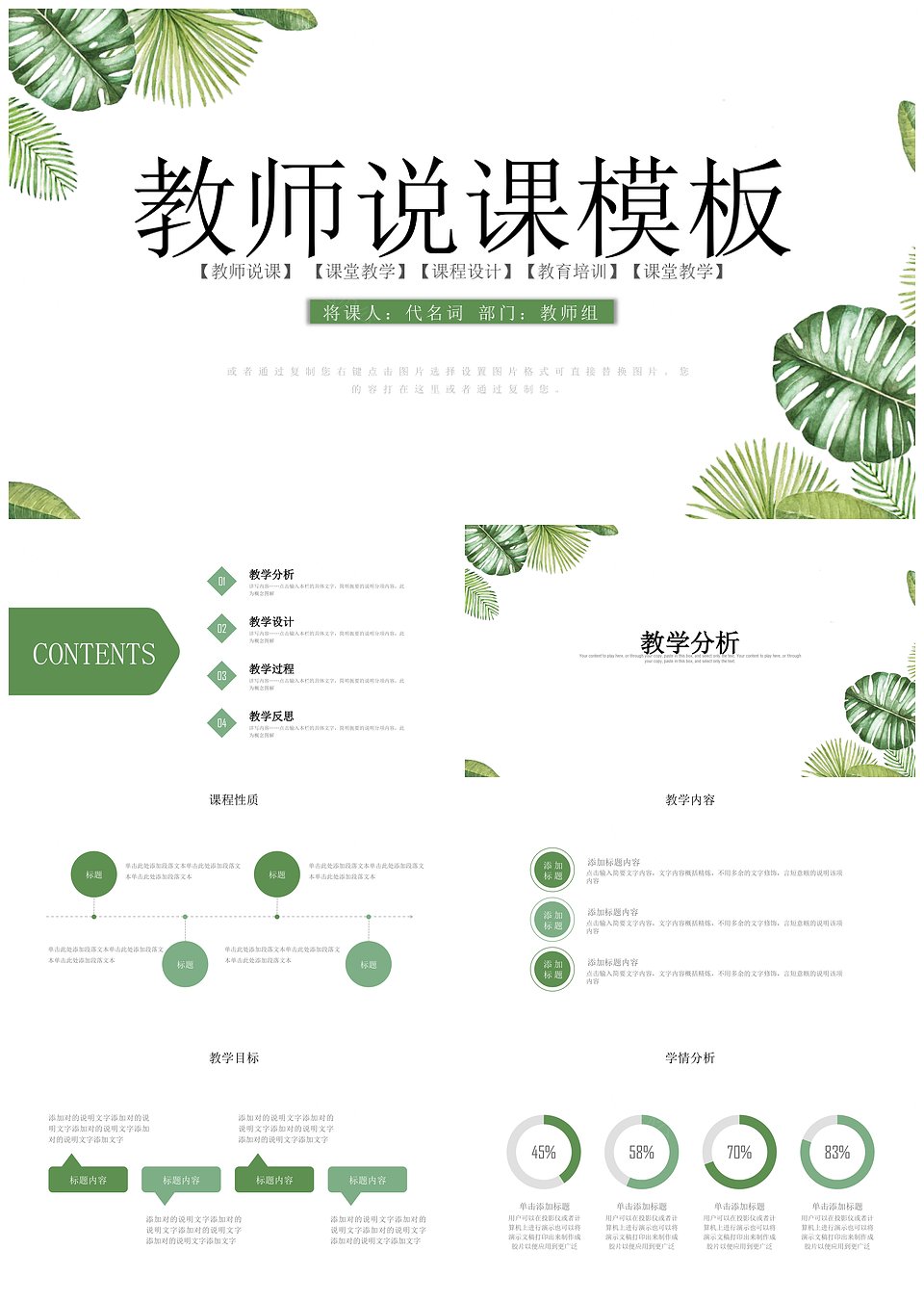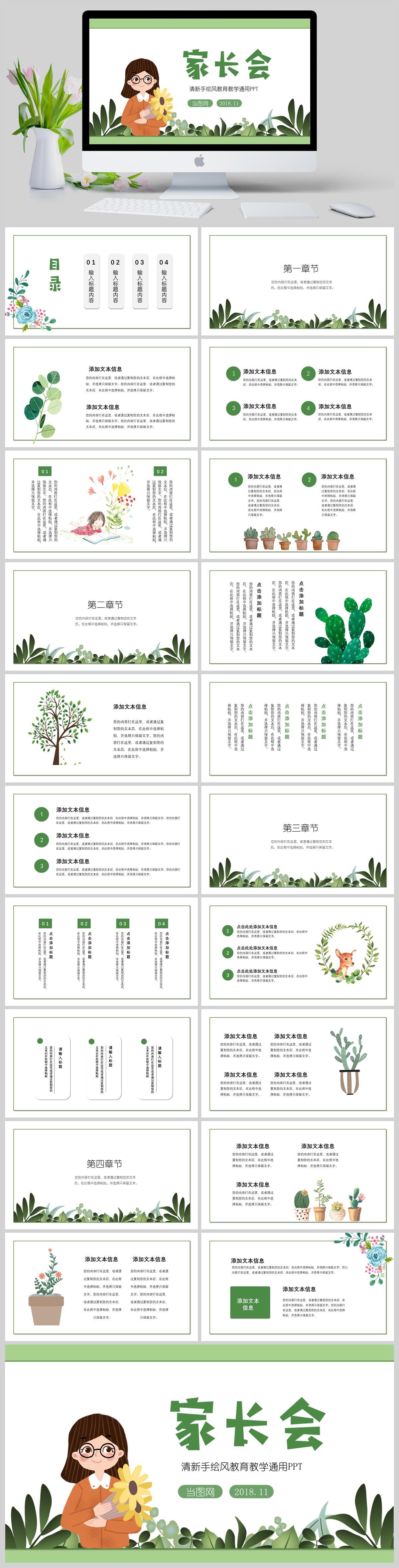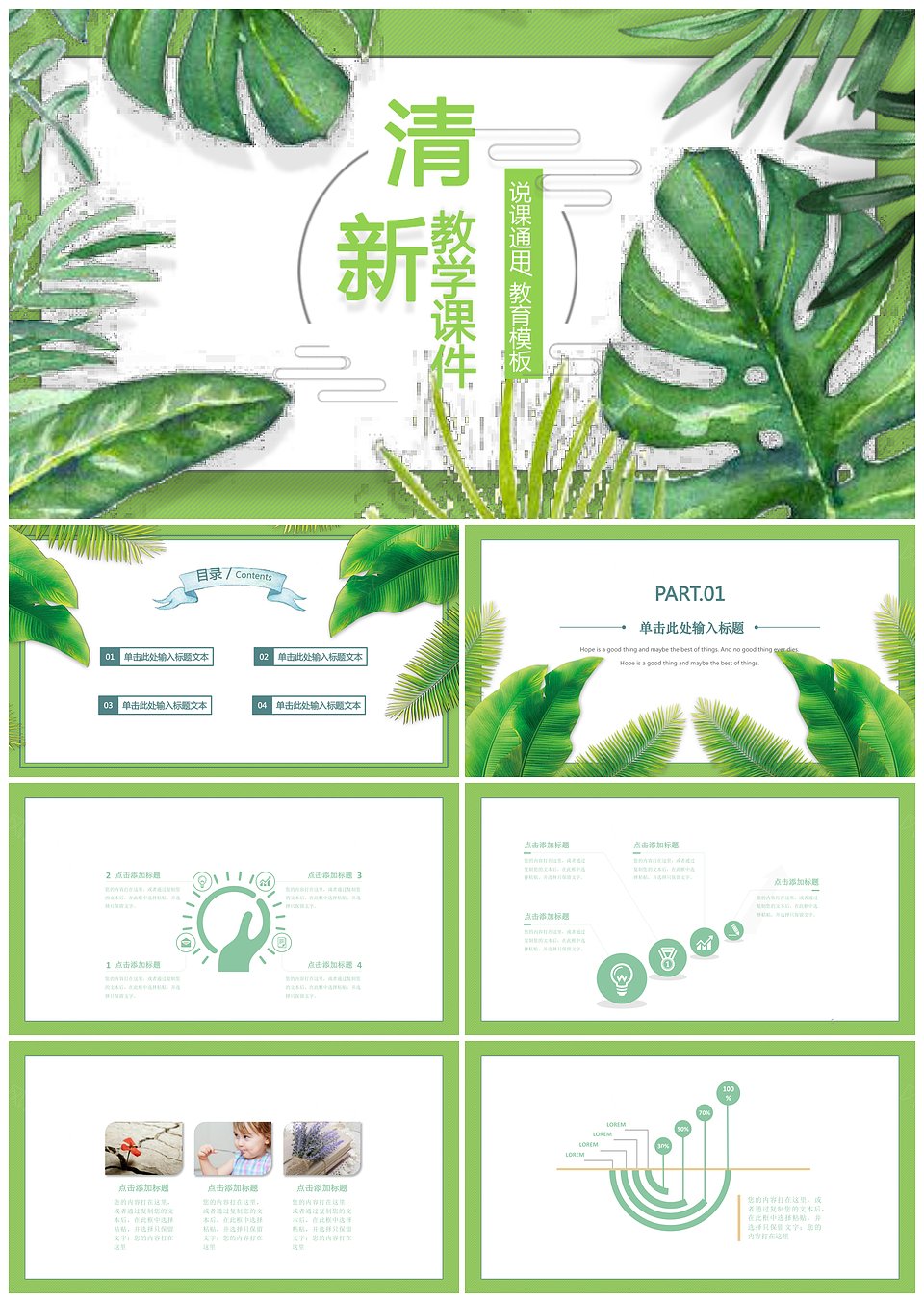 清新唯美手绘叶子培训教育课件公开课PPT模板