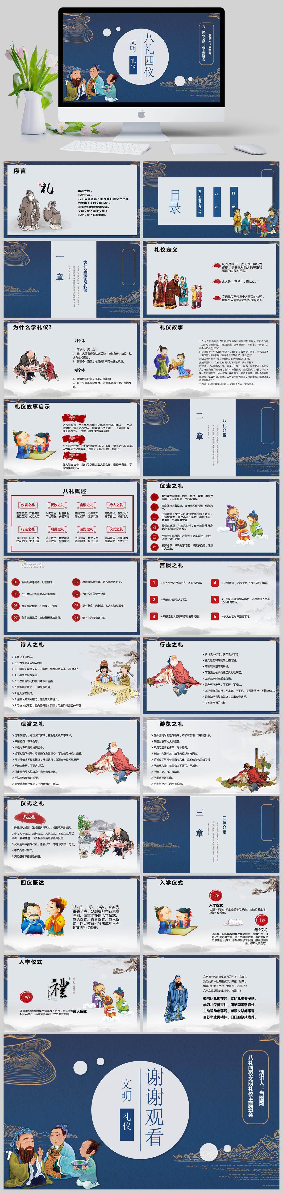 中国风八礼四仪文明礼仪教育主题班会PPT模板