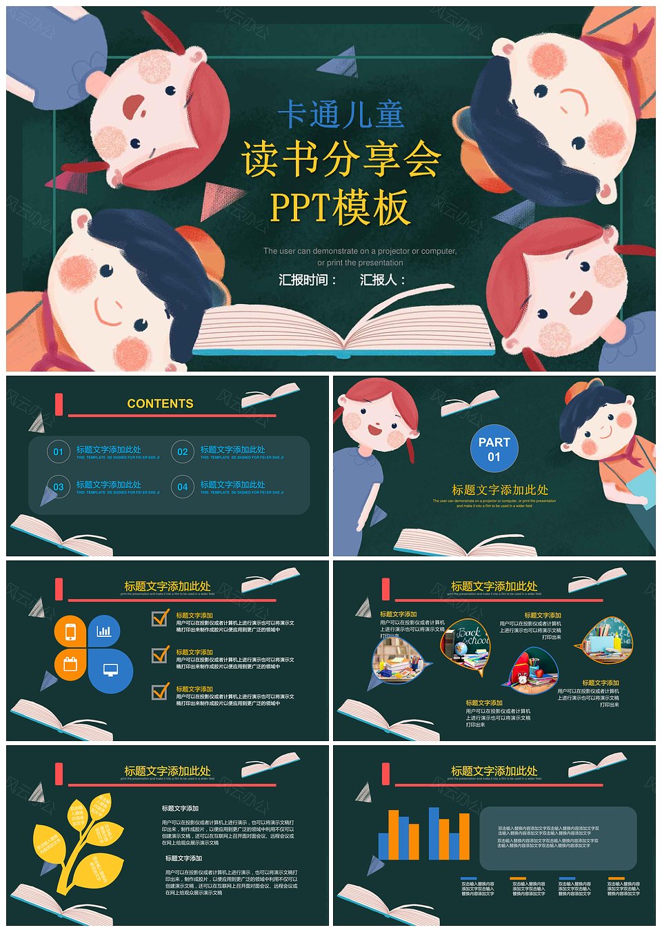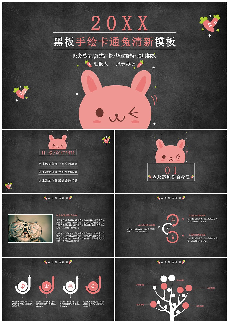 可爱兔子卡通教育教学儿童读书分享会PPT模板